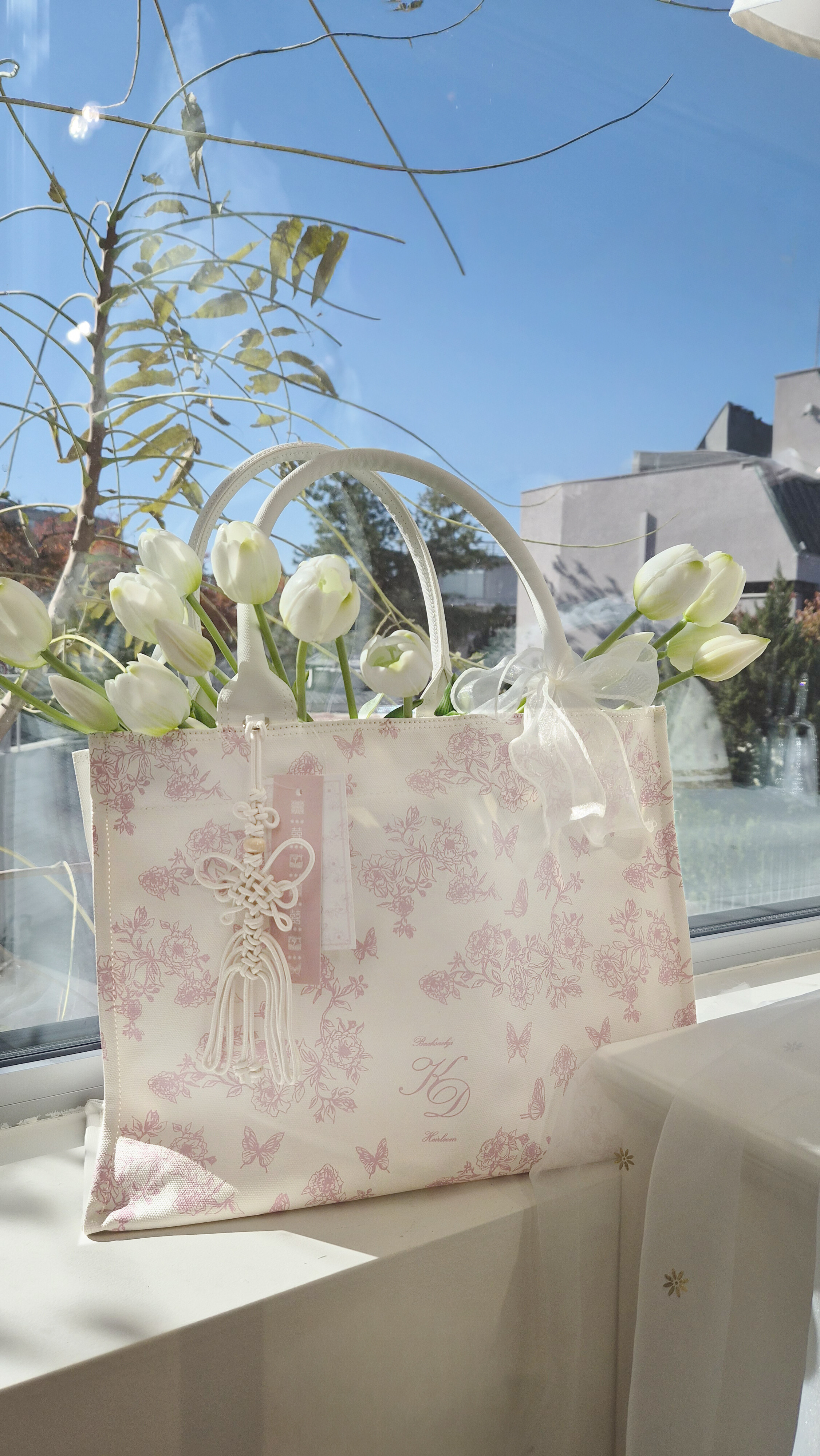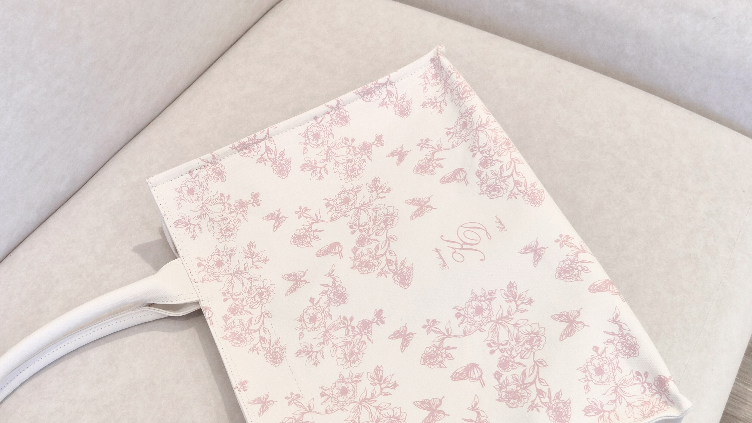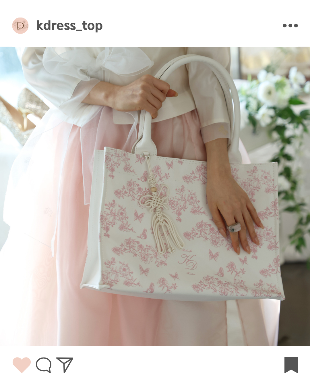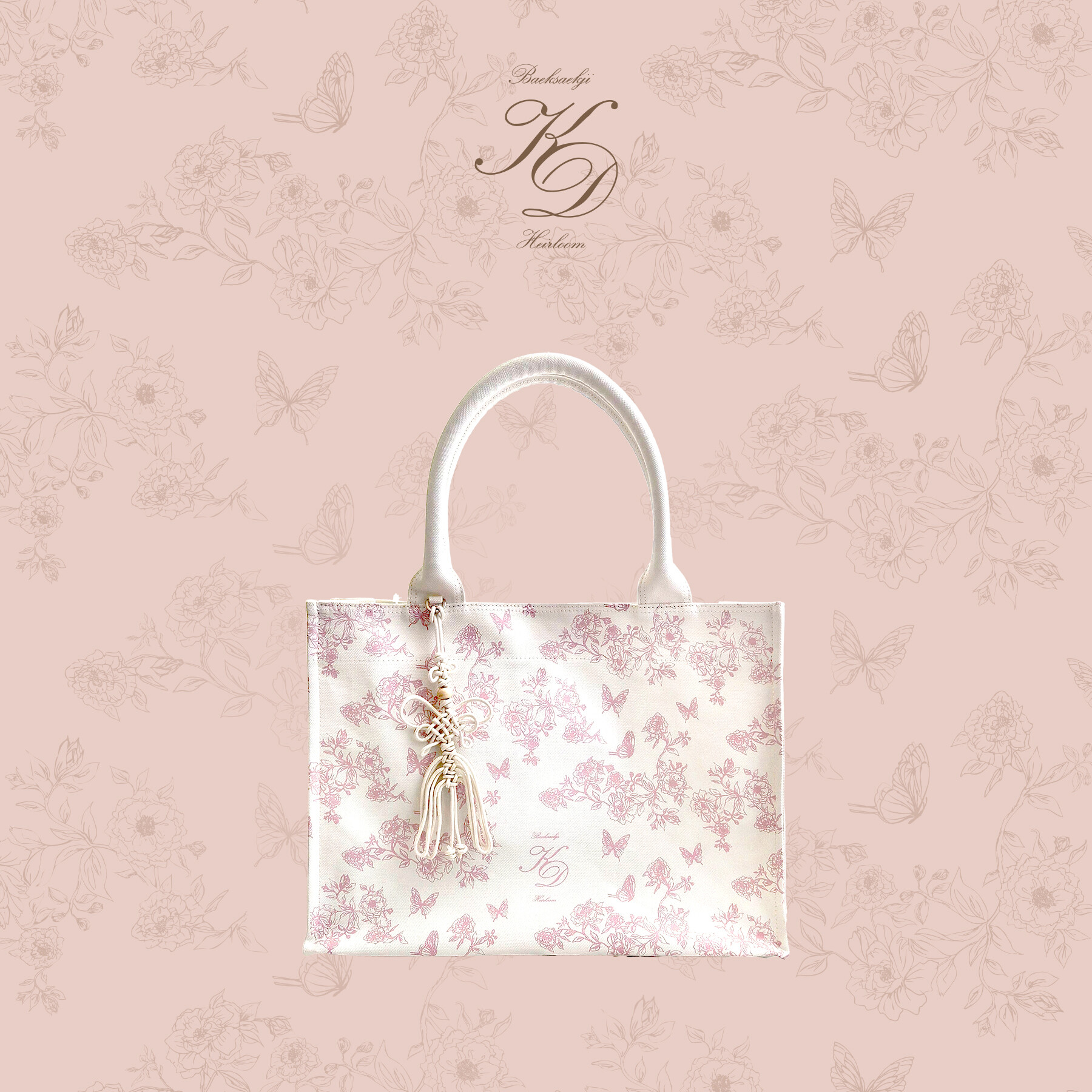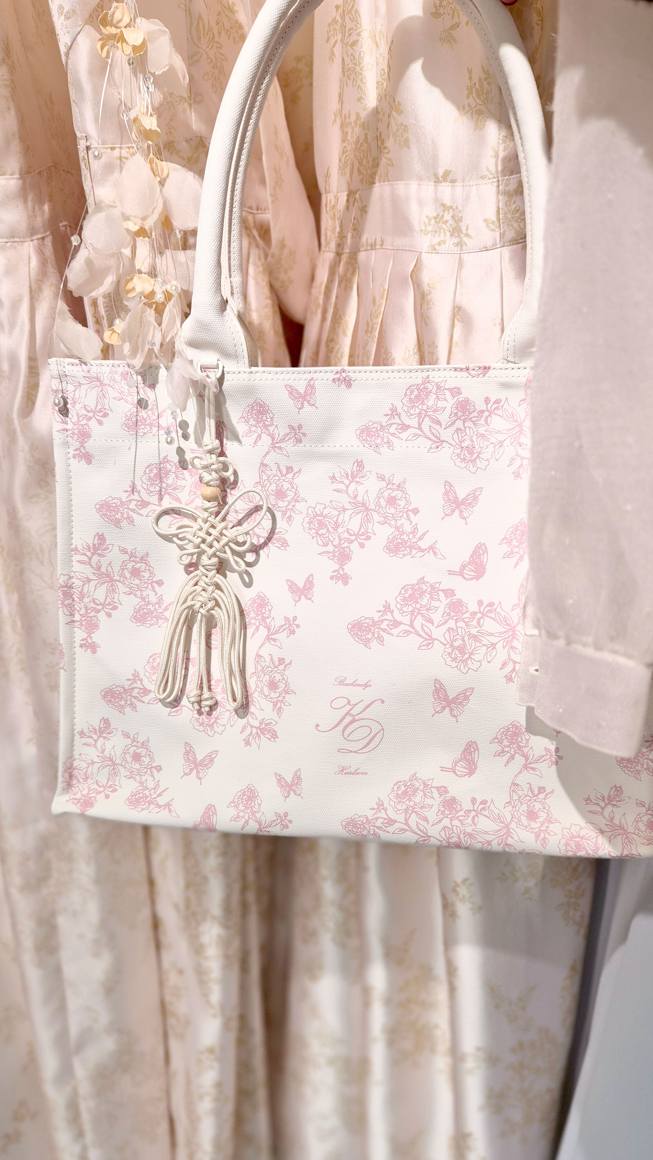 Featuring a soft ivory base adorned with K-Dress’s signature floral and butterfly motifs, it captures an effortlessly elegant and romantic mood at a glance. Crafted in a generous size with durable fabric, the bag is perfect not only for everyday use but also as a stylish travel companion. An inner pocket and magnetic closure add both practicality and security, making it as functional as it is refined. Bring a touch of K-Dress’s signature charm into your daily life with this timeless shopper bag, designed to make every day feel a little more special.