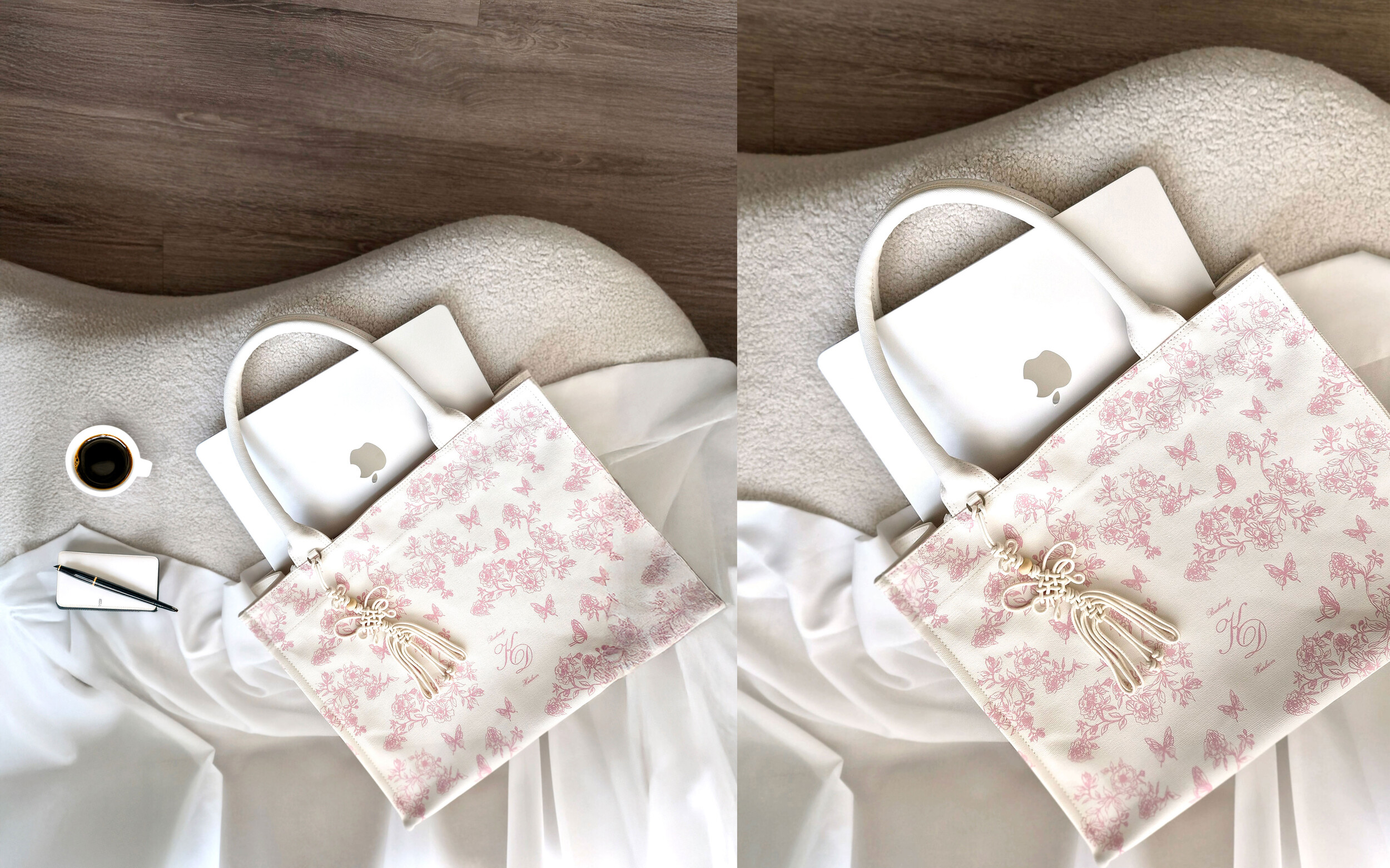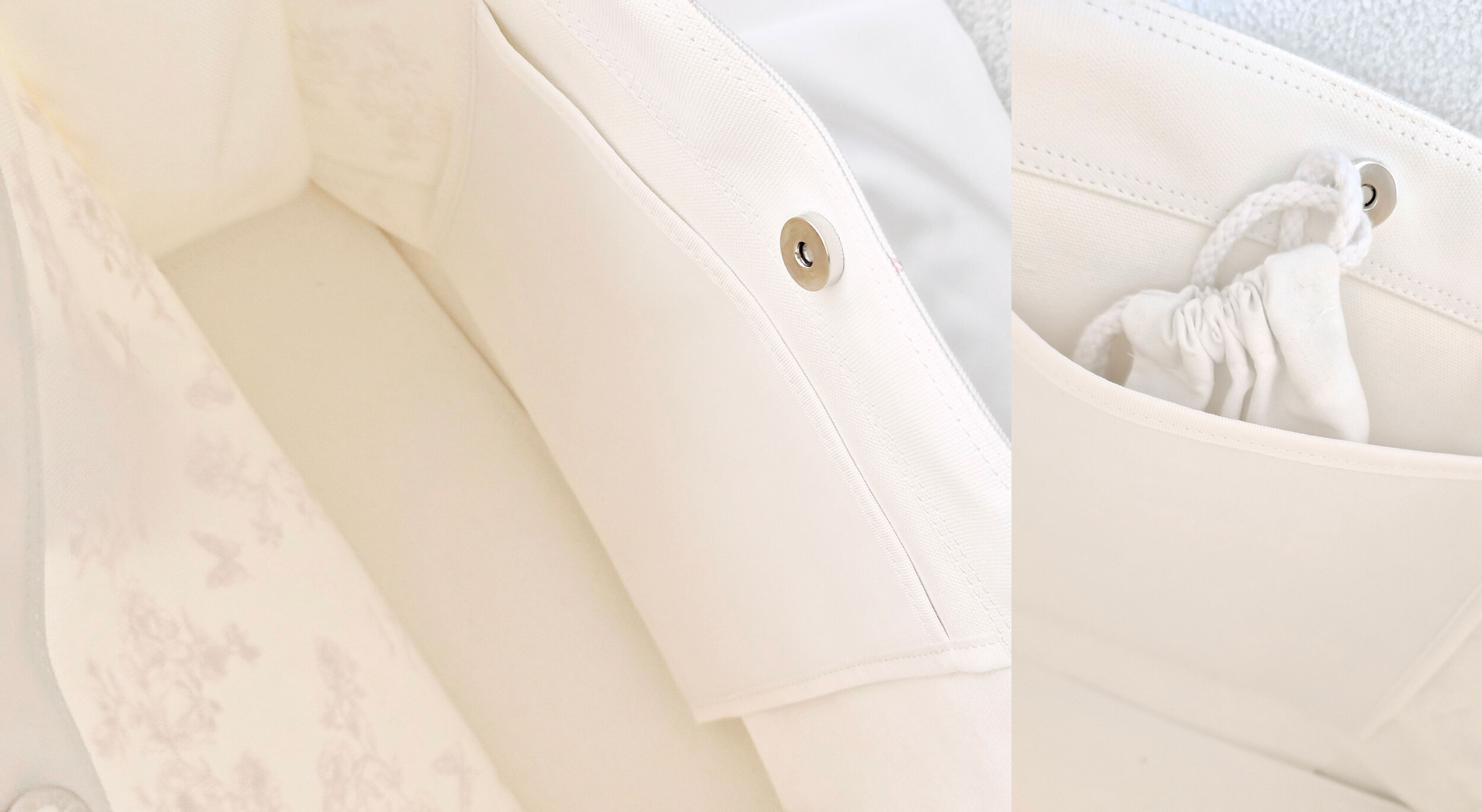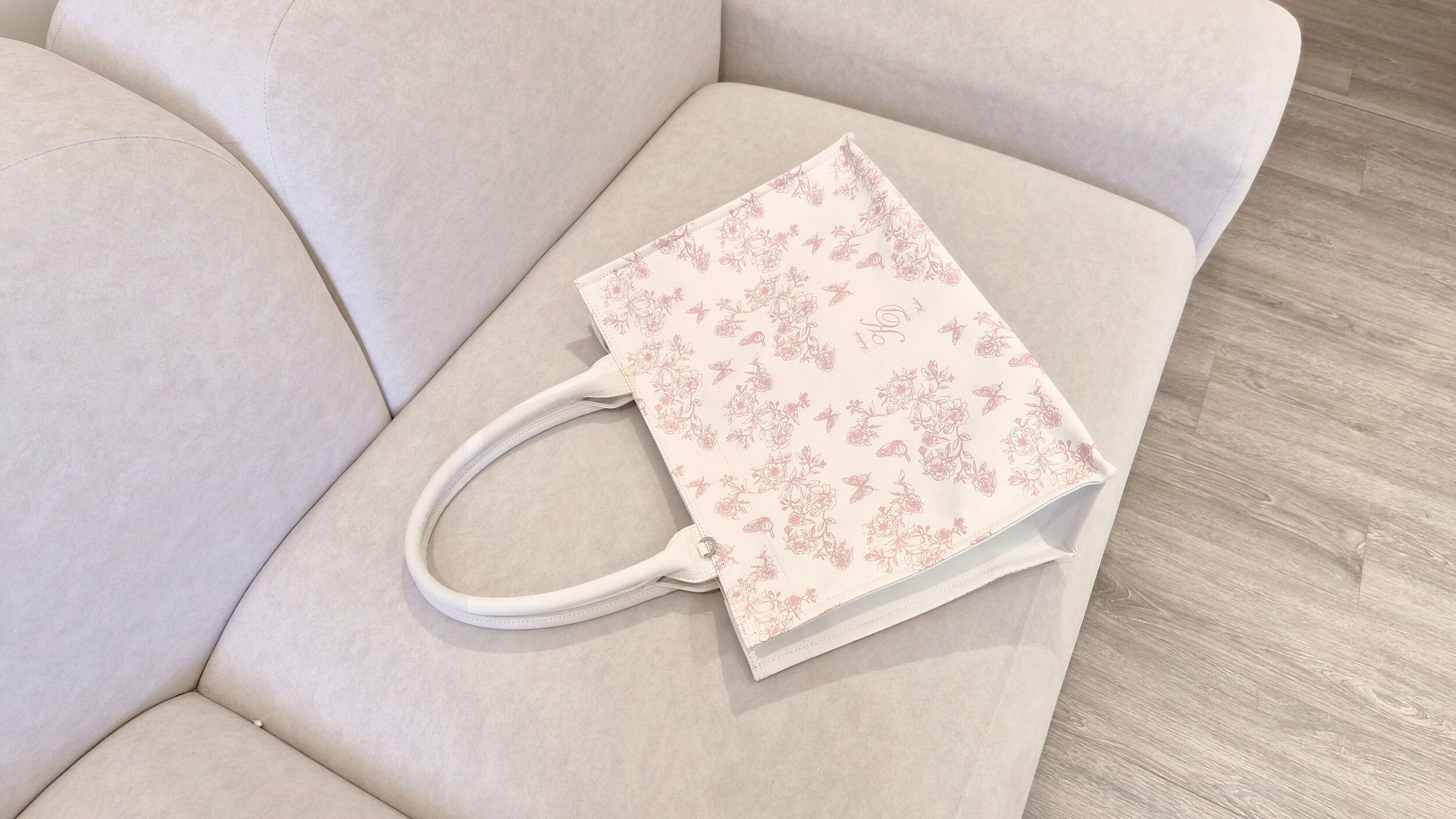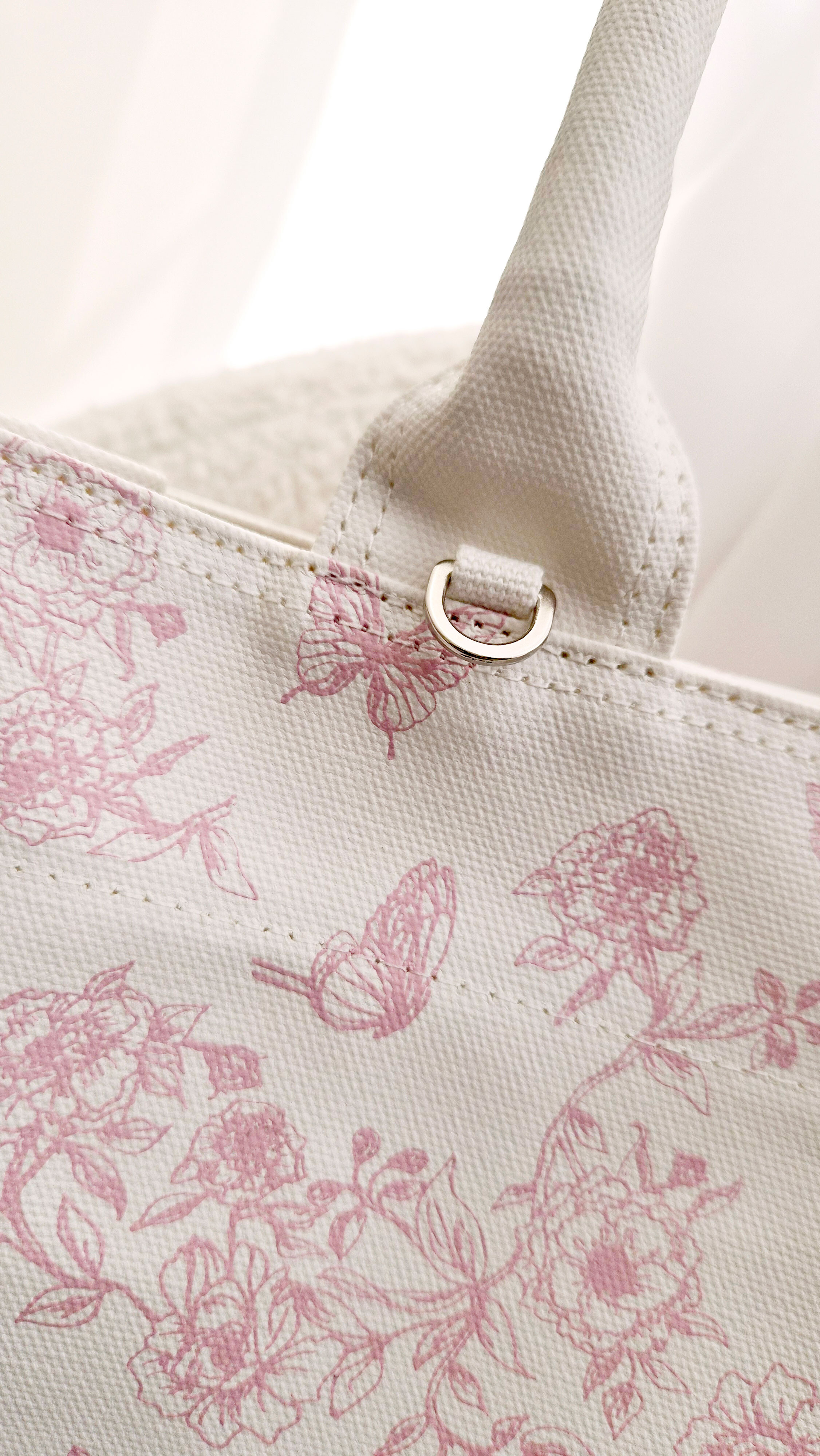Featuring a soft ivory base adorned with K-Dress’s signature floral and butterfly motifs, it captures an effortlessly elegant and romantic mood at a glance. Crafted in a generous size with durable fabric, the bag is perfect not only for everyday use but also as a stylish travel companion. An inner pocket and magnetic closure add both practicality and security, making it as functional as it is refined. Bring a touch of K-Dress’s signature charm into your daily life with this timeless shopper bag, designed to make every day feel a little more special.
