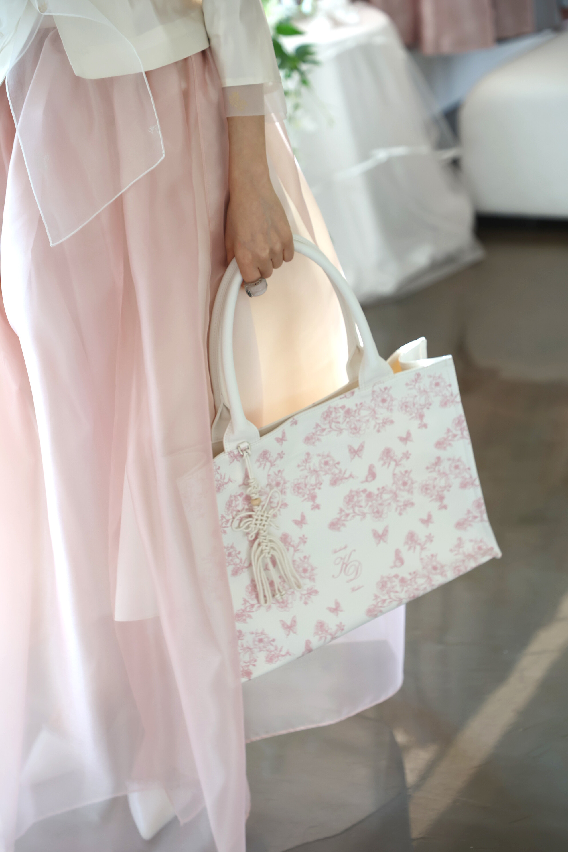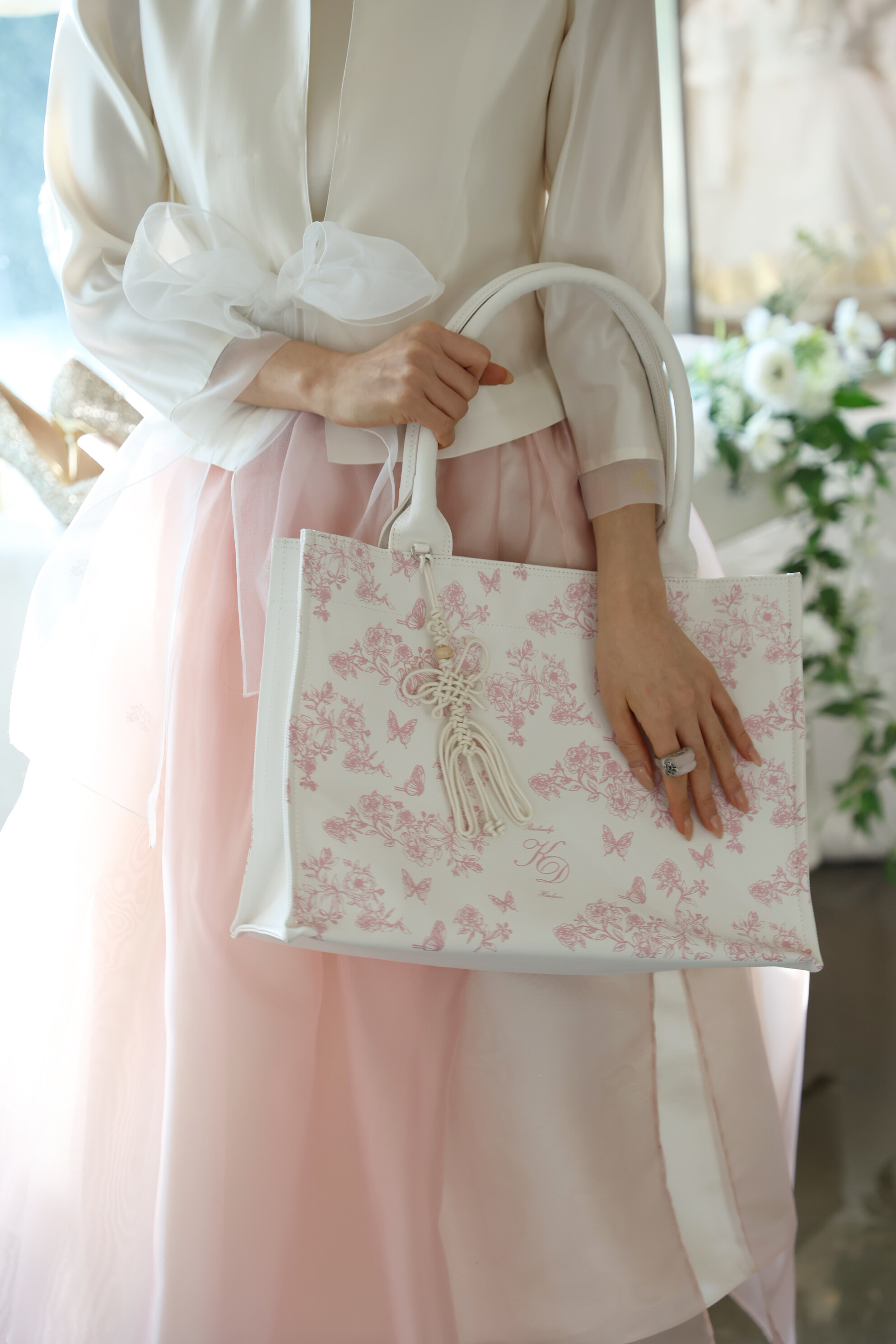 케드 쇼퍼백에 아이보리 나비매듭 노리개를 함께 연출해주시면, 더욱 포인트 있게 매치하실 수 있습니다.