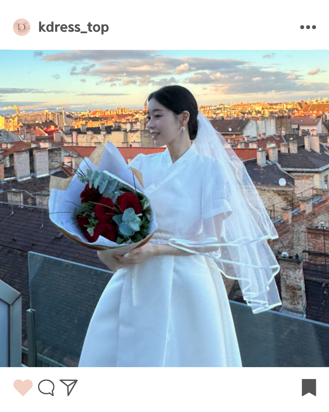 좋은 원단으로 한복의 미를 살려 완성한, 깔끔하고 고급스러운 드레스입니다. 고급 미카도 실크 중에서도 힘 있고 도톰한 소재를 선택해 절개하고 주름을 넣어 속치마 없이도 자연스럽게 퍼지는 실루엣을 구현했습니다. 고심 끝에 완성된 독특한 치마 절개 라인은 우아하면서도 시크한 분위기를 자아내며, 과한 장식 없이도 충분히 돋보입니다. 부피가 작아 장소에 구애받지 않고 단아하고 우아하게 착용할 수 있어 실용성 또한 뛰어납니다.