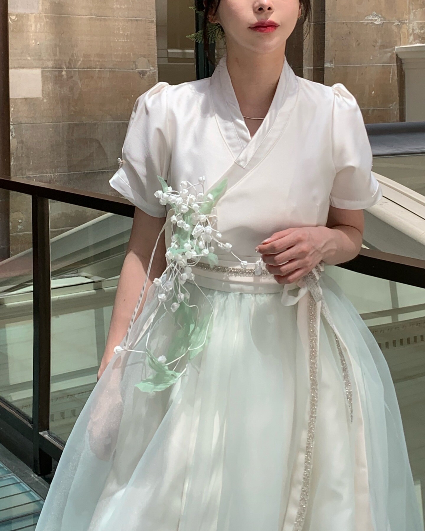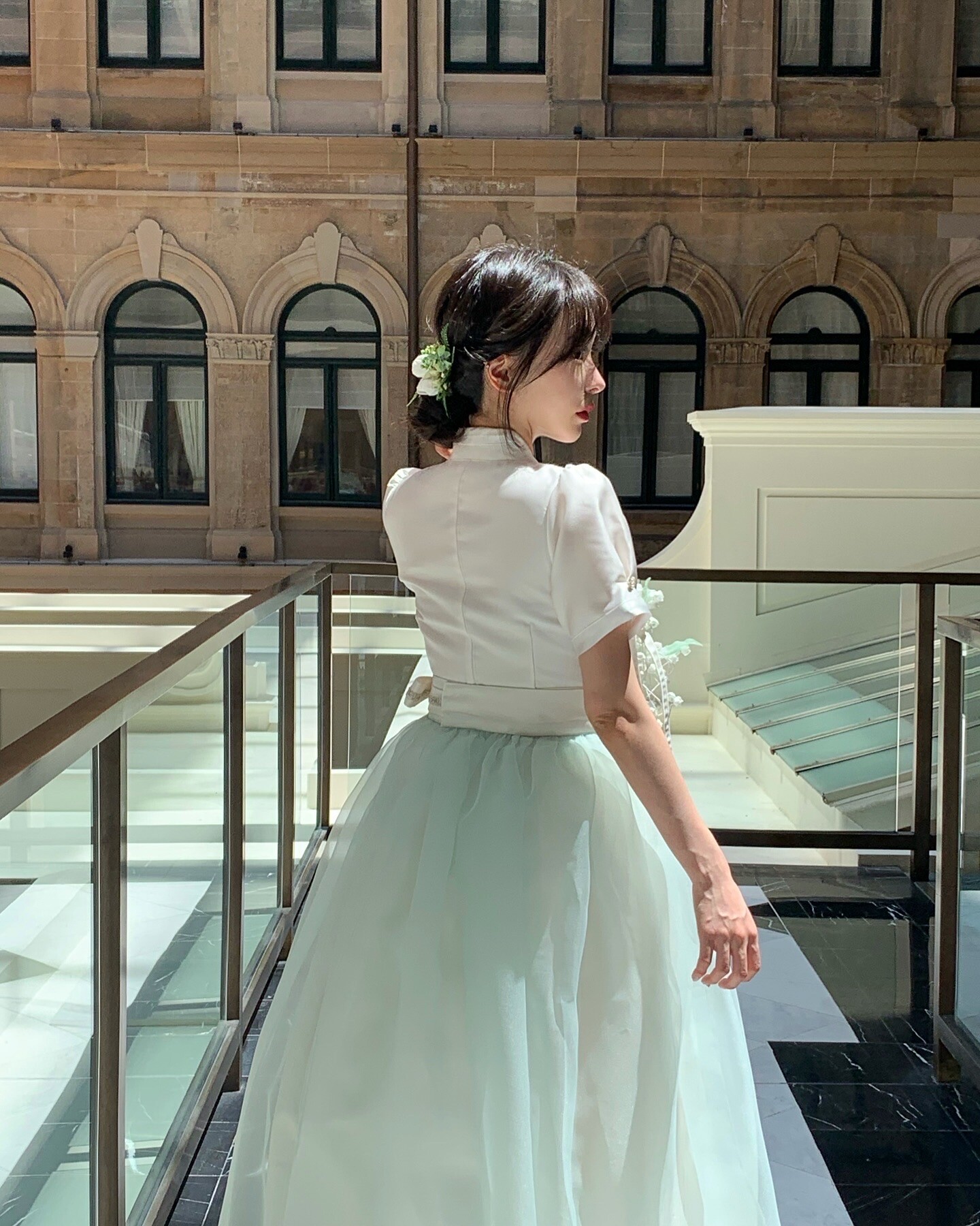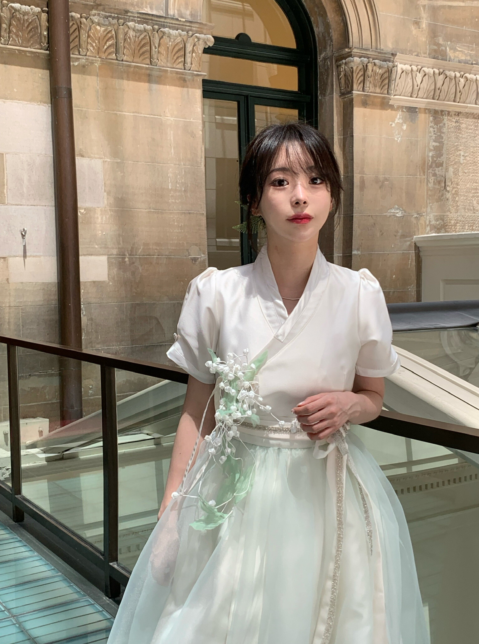This overskirt is designed to layer beautifully over the K-dress, enhancing the traditional hanbok-inspired silhouette. Made from a lightweight, sheer fabric, it adds a romantic elegance and brings depth and dimension to the overall look.