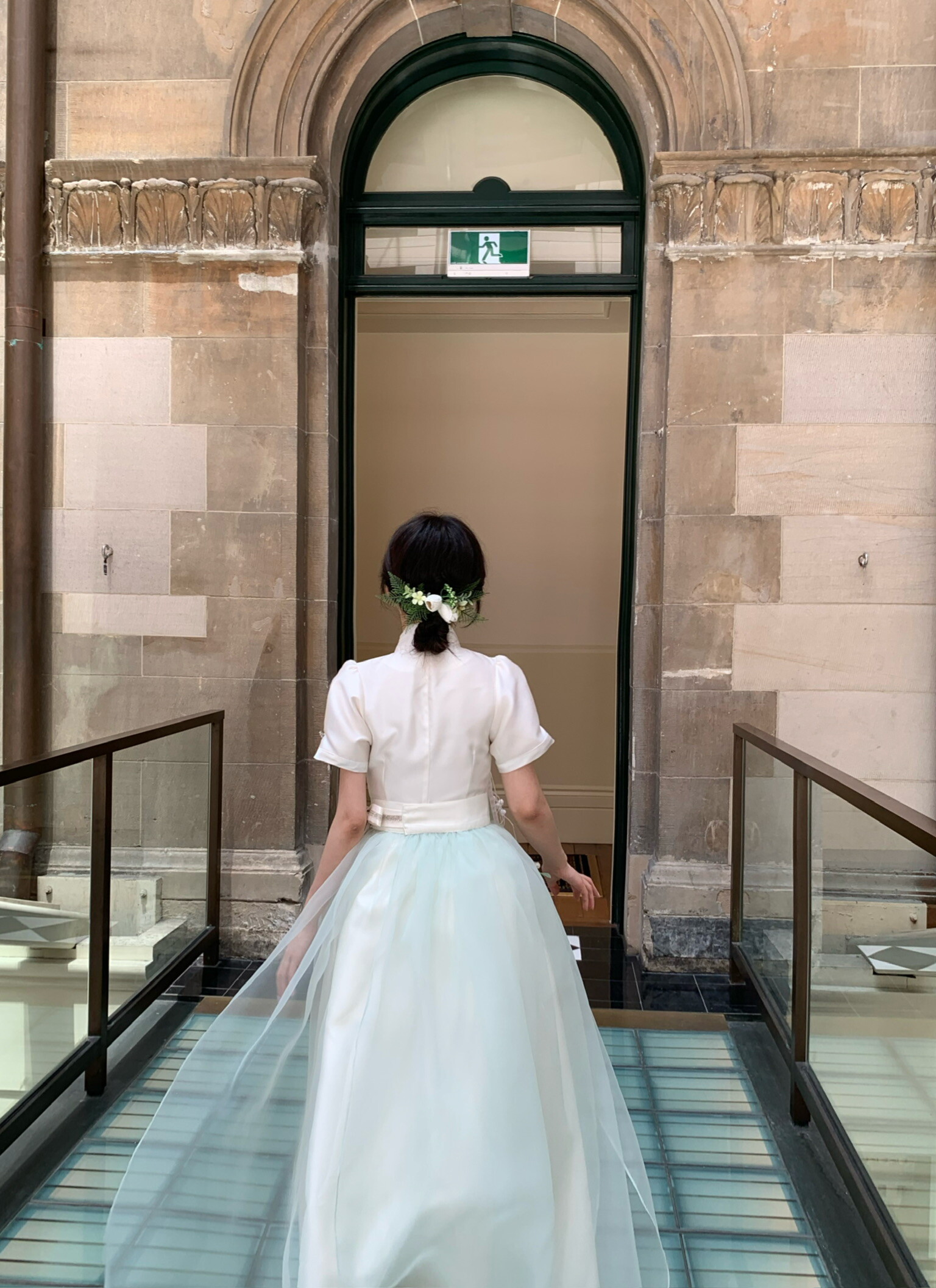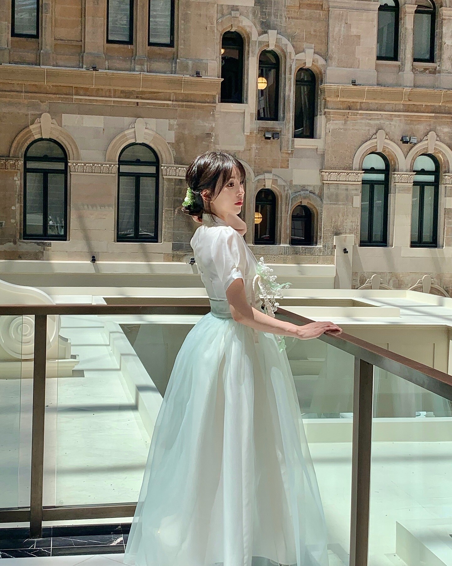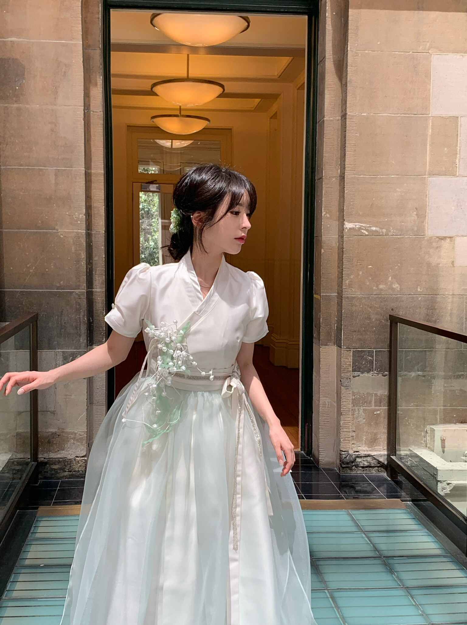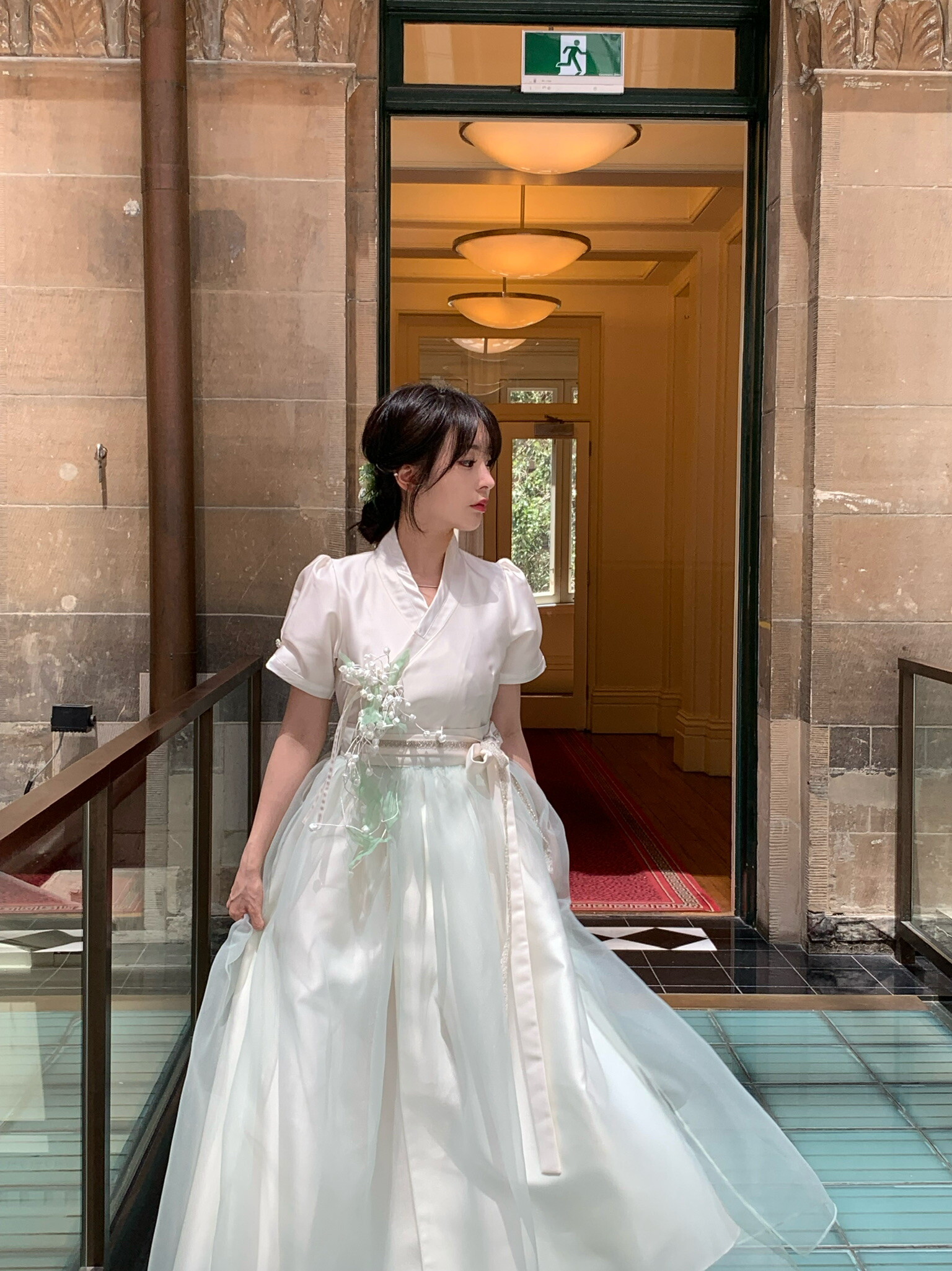 This overskirt is designed to layer beautifully over the K-dress, enhancing the traditional hanbok-inspired silhouette. Made from a lightweight, sheer fabric, it adds a romantic elegance and brings depth and dimension to the overall look.