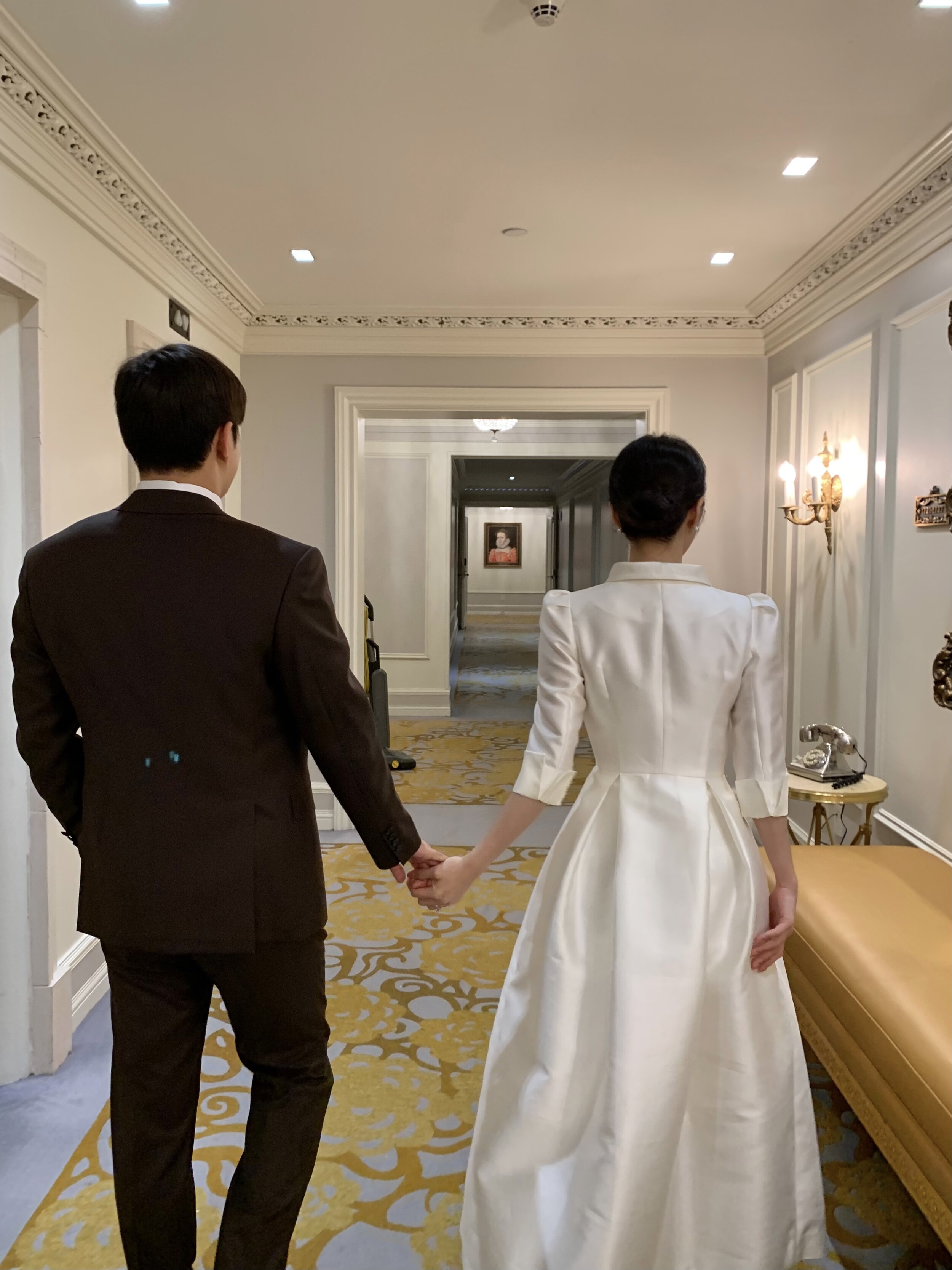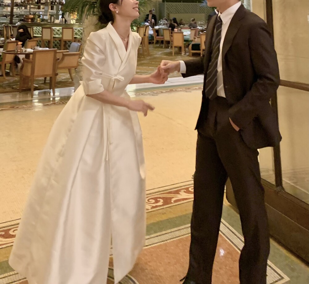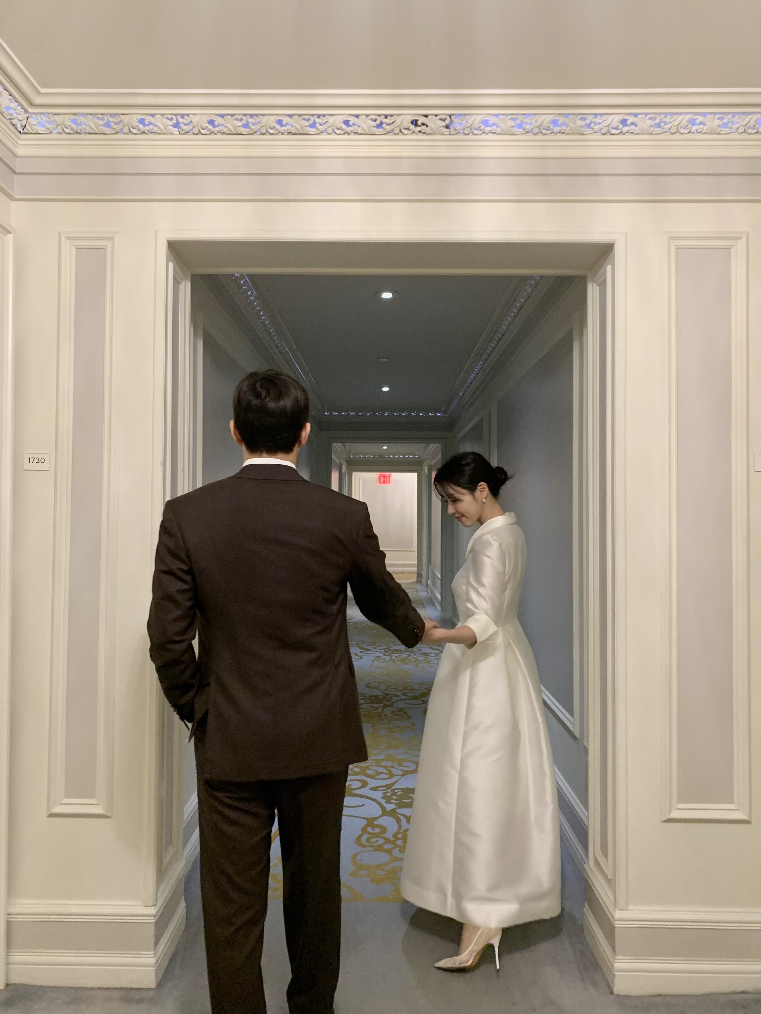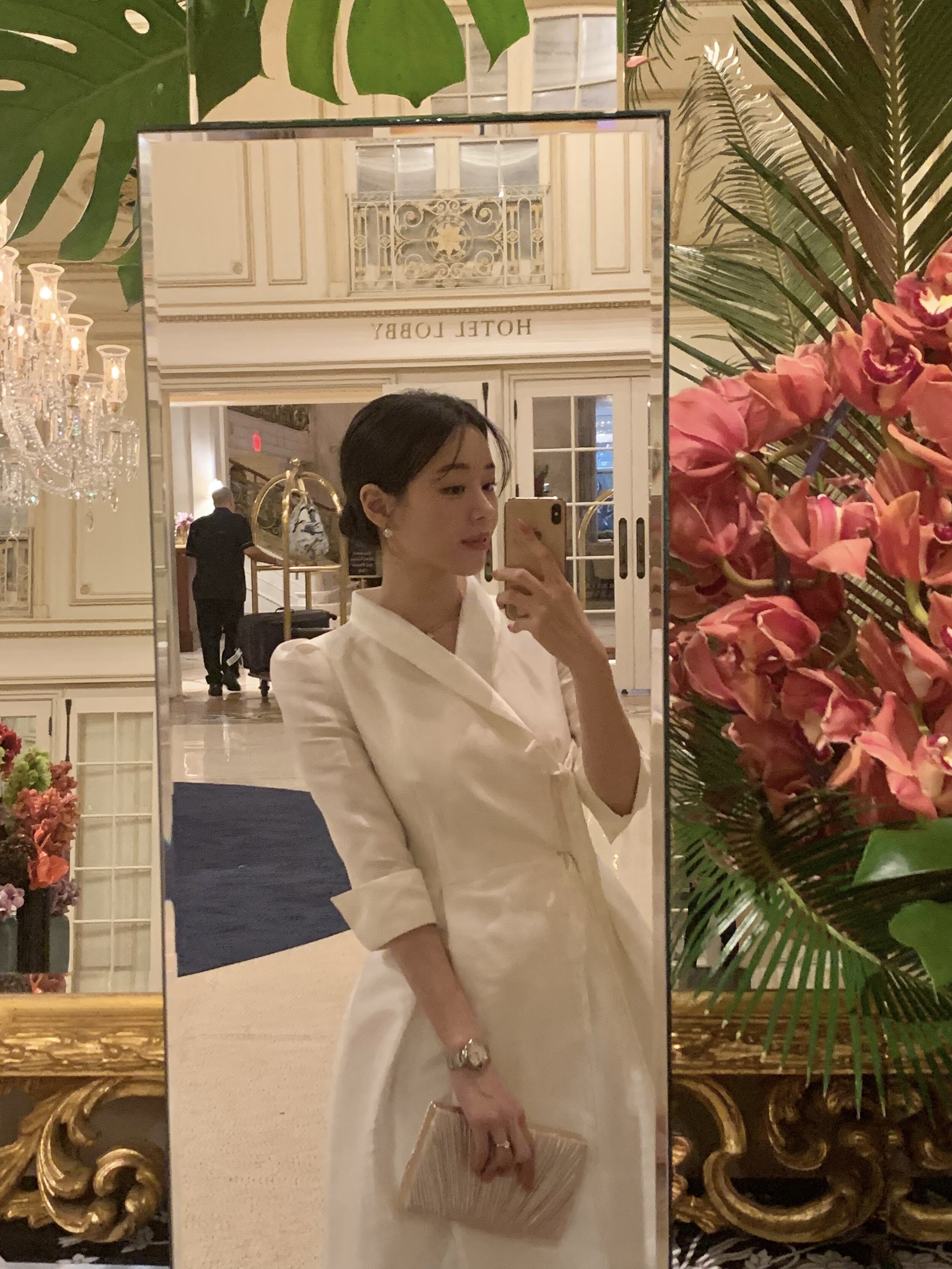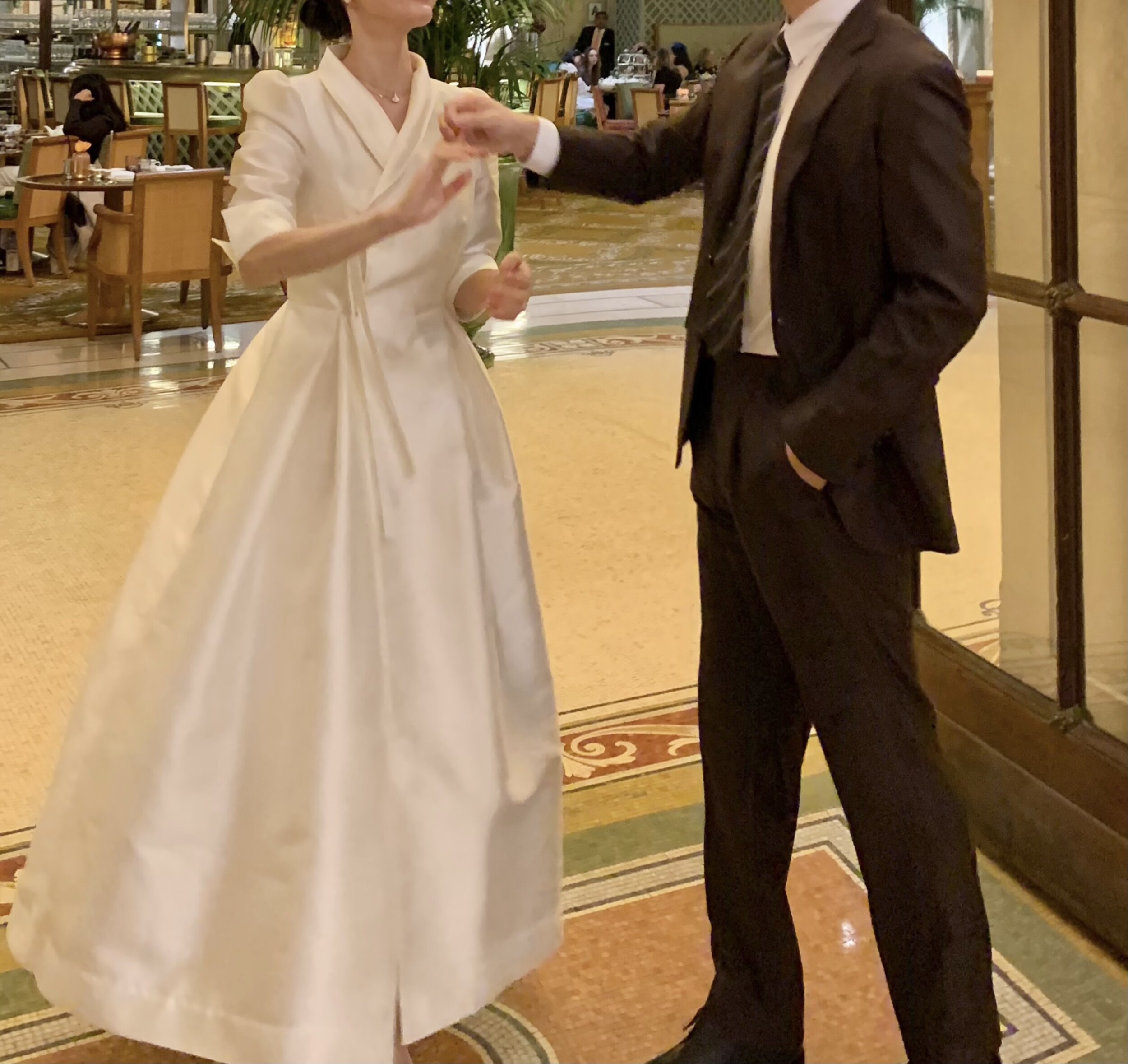 This dress blends the subtle sheen of Italian silk with the luxurious texture of traditional Korean brocade, creating an elegant mood reminiscent of royal styles from both East and West. Designed to be more convenient to wear than a traditional hanbok, it is perfect for weddings or other special occasions, and is highly recommended for those seeking a distinctive, graceful look with a Korean touch.