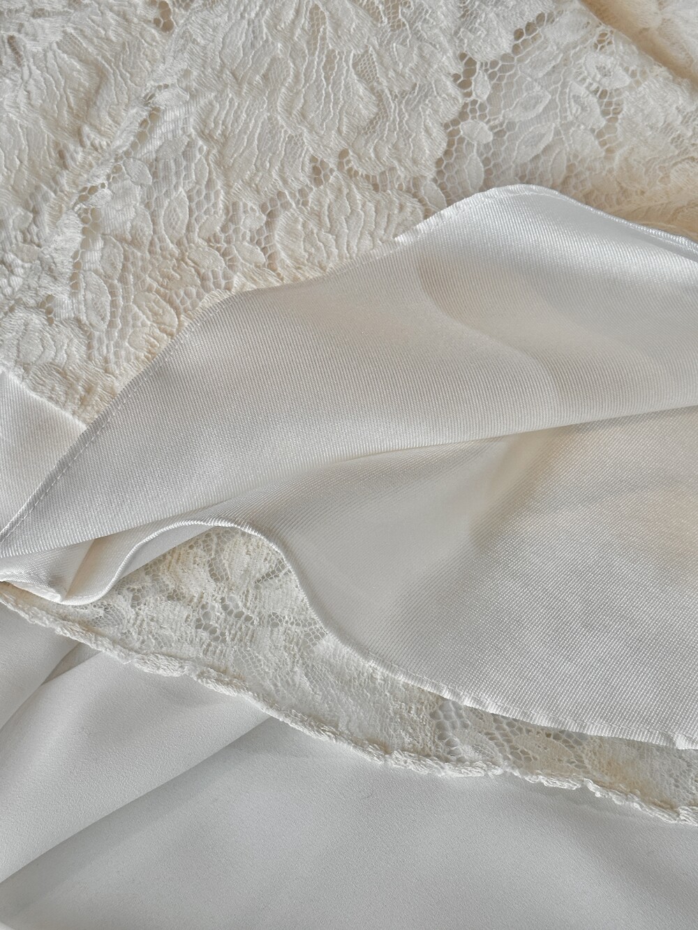 This lace dress is designed for effortless everyday elegance. Made entirely from soft Italian lace and fully lined with luxurious Mikado silk, it features only the finest materials. The flattering A-line silhouette, refined through multiple adjustments, enhances a feminine and slender look perfect even without a jacket.