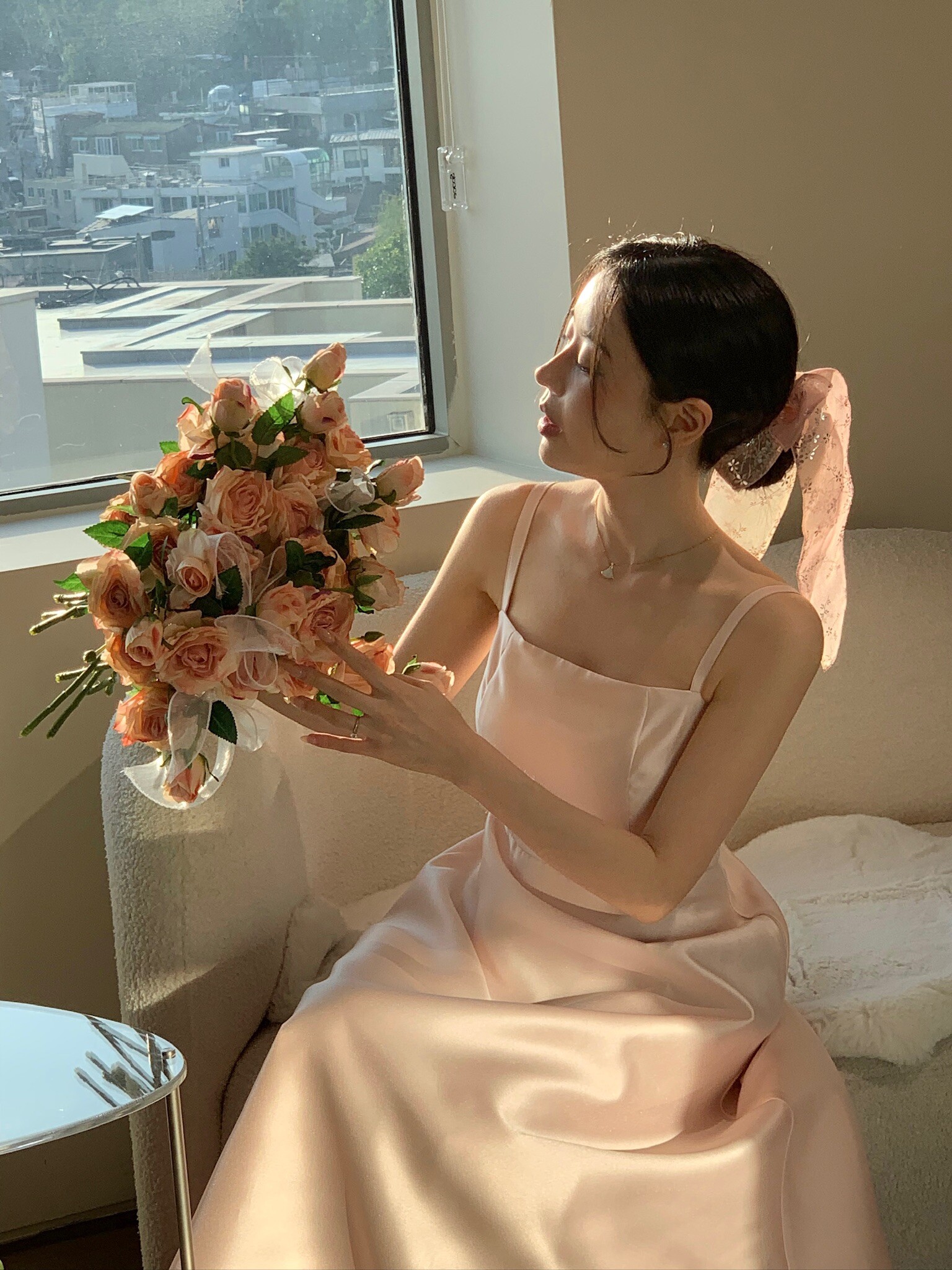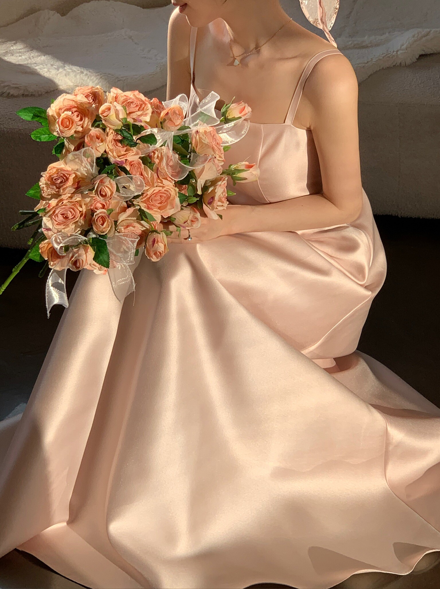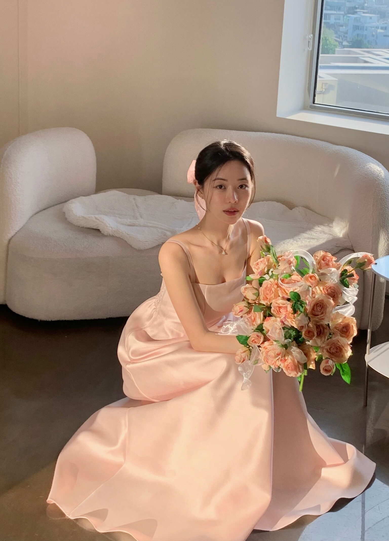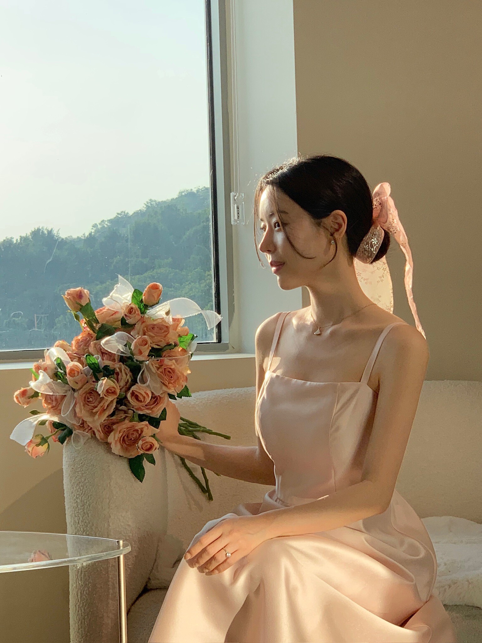 Made from silk with a subtle sheen, this dress flows gracefully with movement, creating an elegant silhouette. Its simple design carries a sense of refined beauty, making it perfect to wear on its own or styled with a hanbok-inspired blouse or overskirt for a more traditional touch.