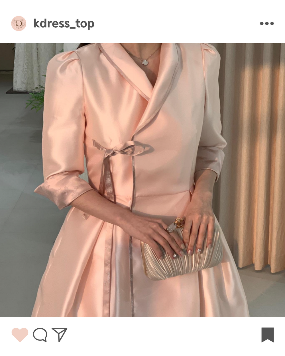 This dress blends the subtle sheen of Italian silk with the luxurious texture of traditional Korean brocade, creating an elegant mood reminiscent of royal styles from both East and West. Designed to be more convenient to wear than a traditional hanbok, it is perfect for weddings or other special occasions, and is highly recommended for those seeking a distinctive, graceful look with a Korean touch.