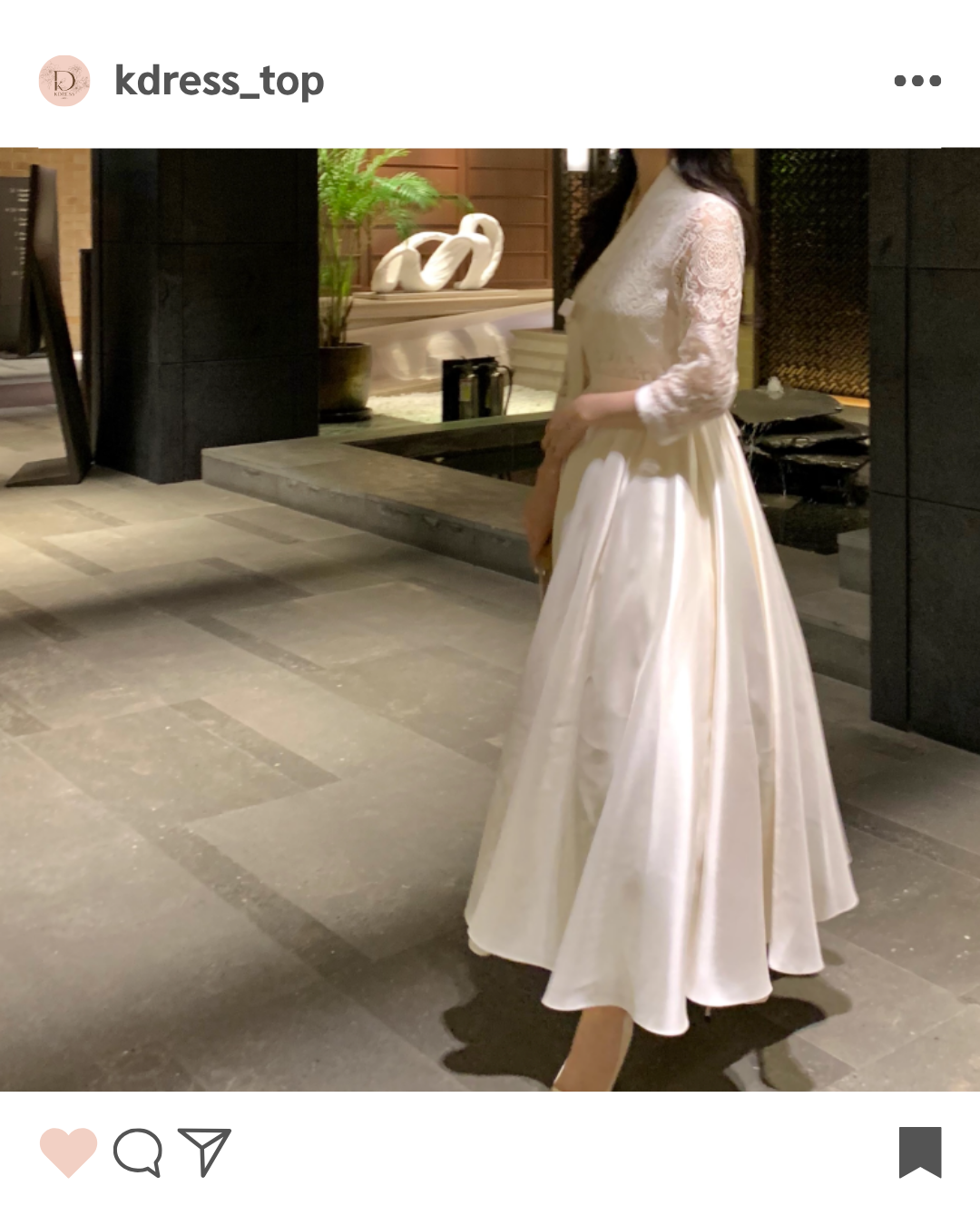 The top, delicately crafted with traditional lace patterns, features a refined collar detail inspired by the dongjeong line of the hanbok, adding an air of elegance.The skirt, made from luxurious Mikado silk, is designed in a wrap-dress silhouette that flows gracefully with movement.Blending classic beauty with a modern sensibility, this dress reinterprets the charm of tradition through a contemporary lens.