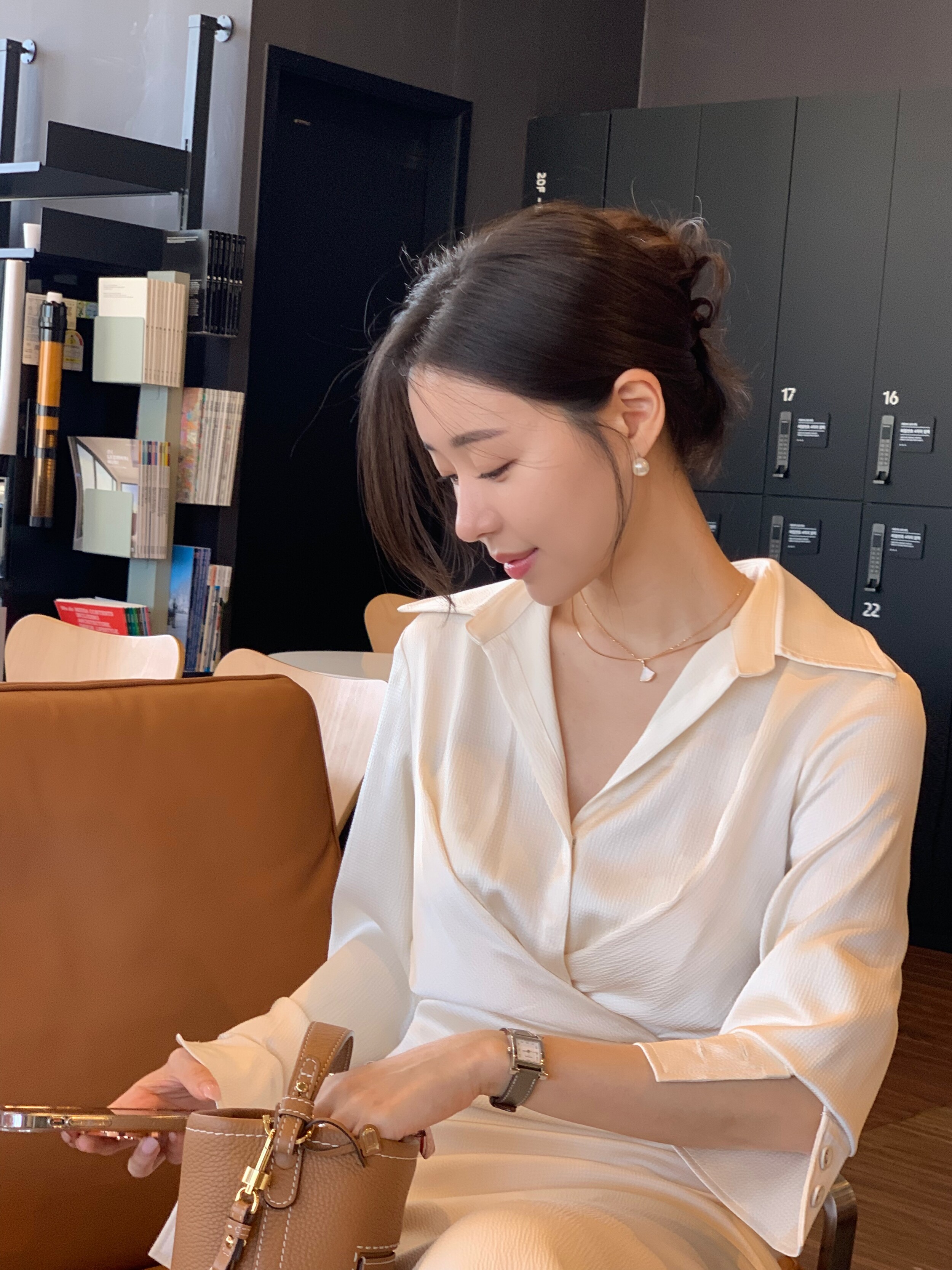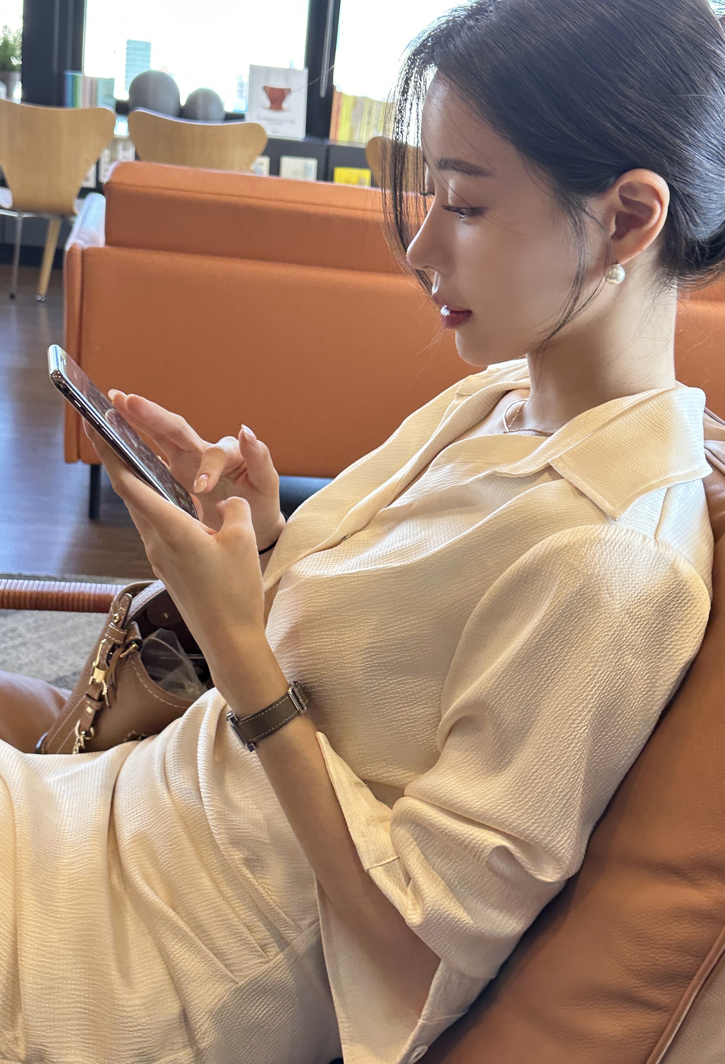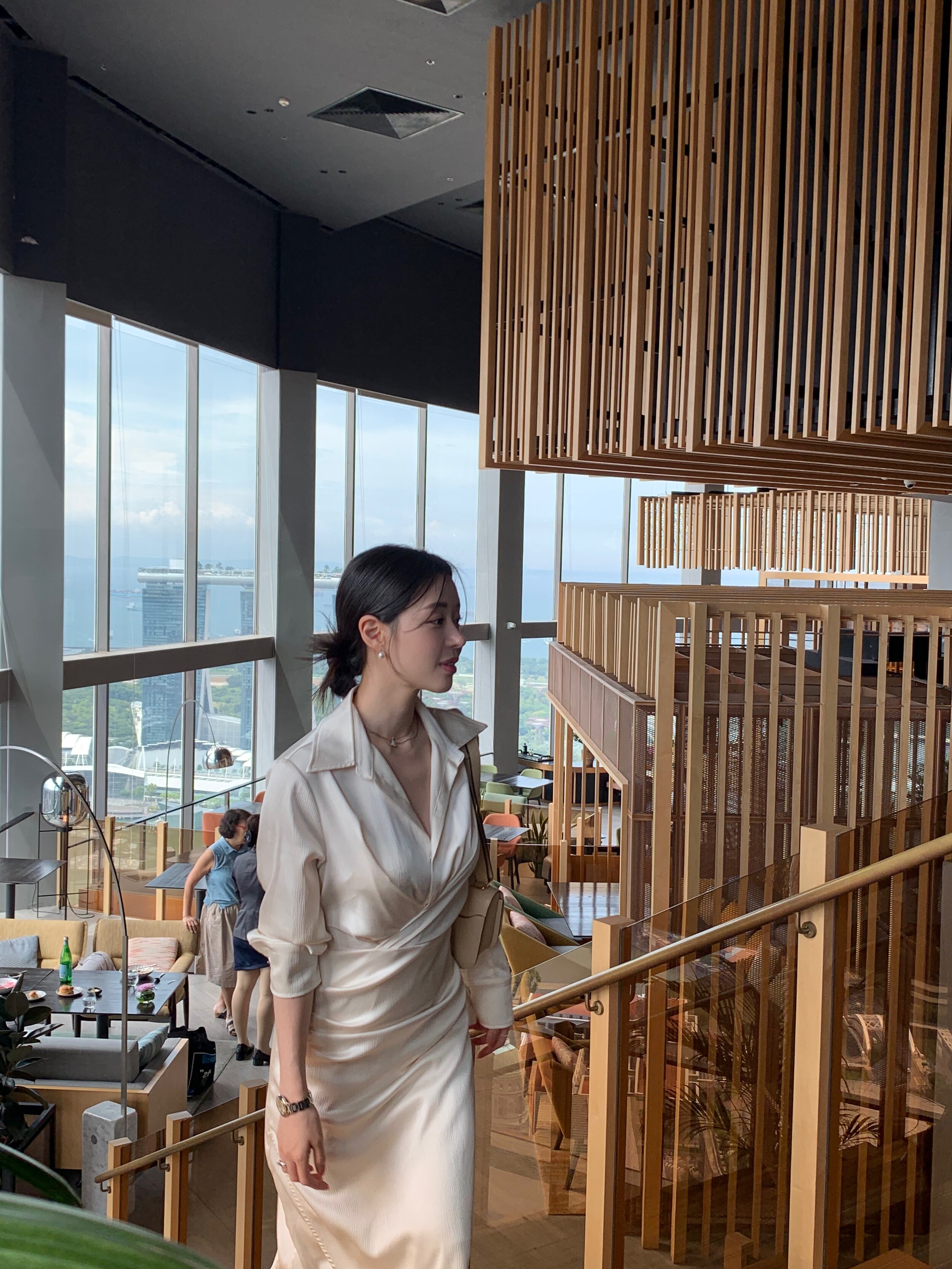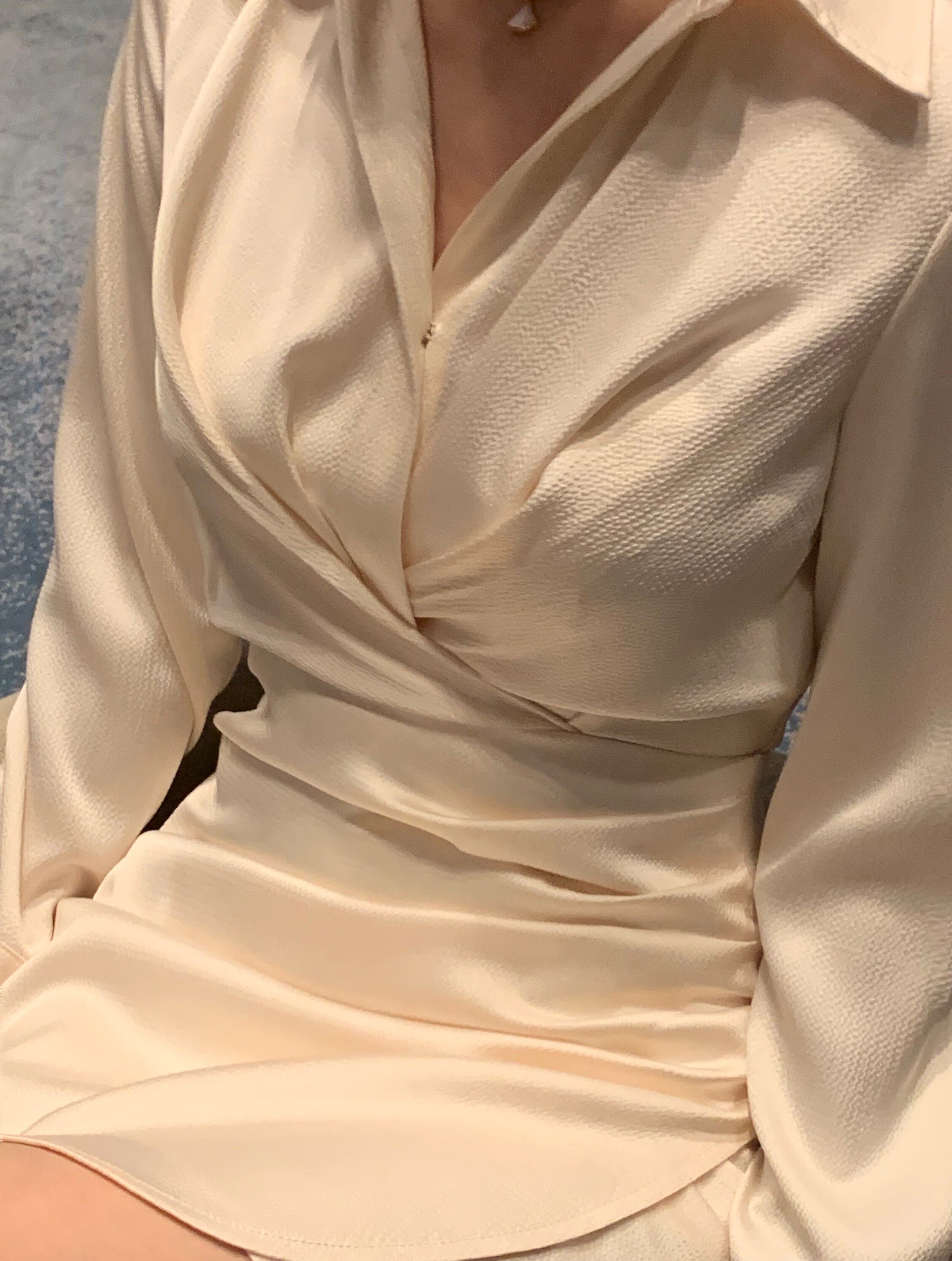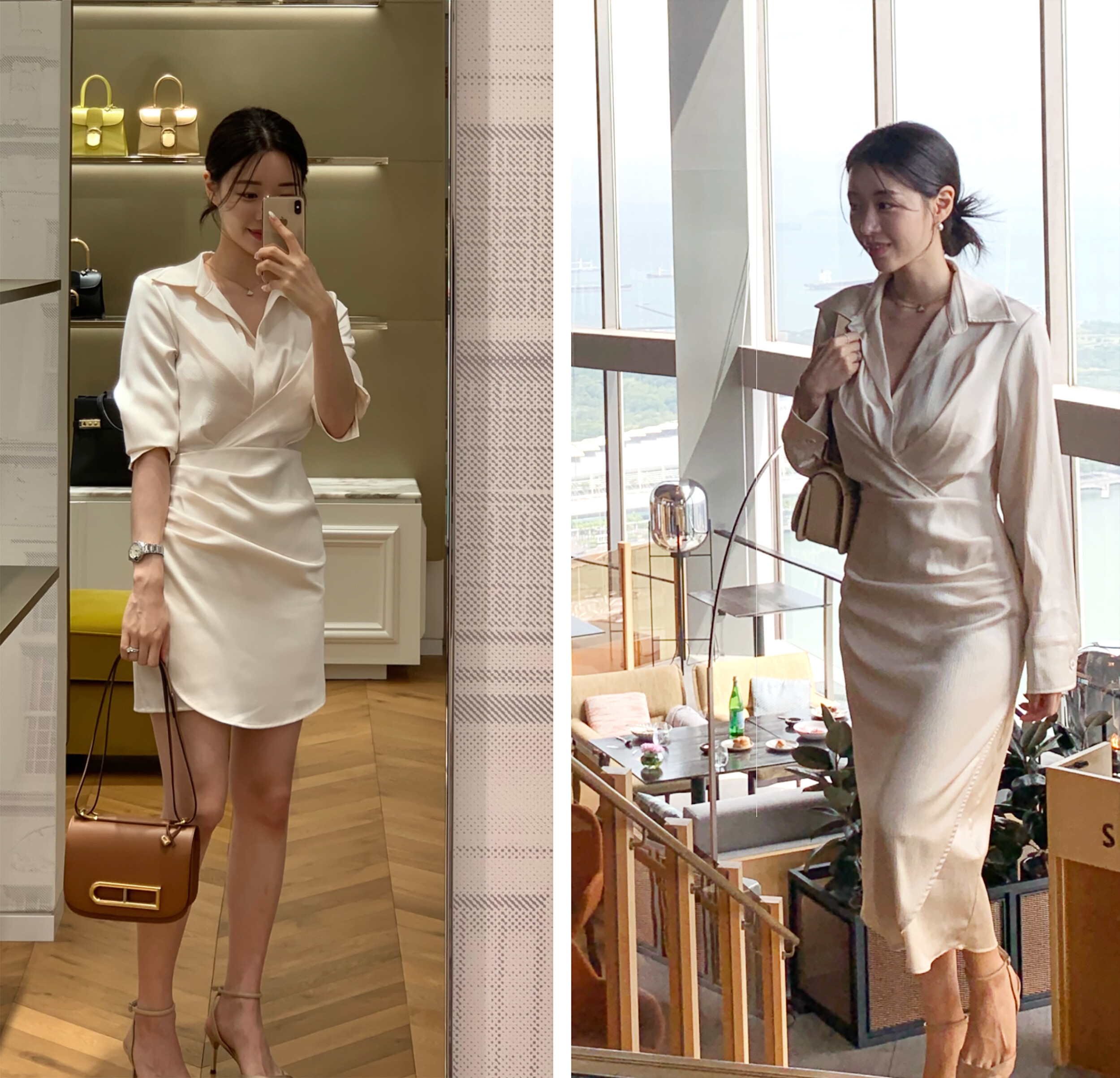 이 원피스는 은은한 광택감과 셔링 디테일이 더해져 고급스럽고 우아한 무드를 선사합니다.