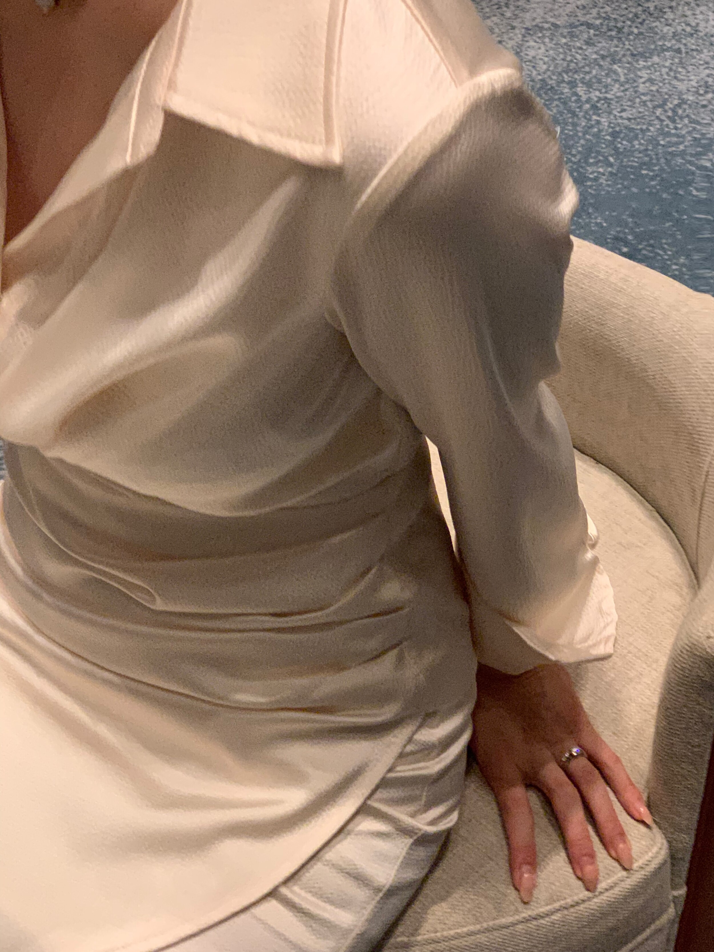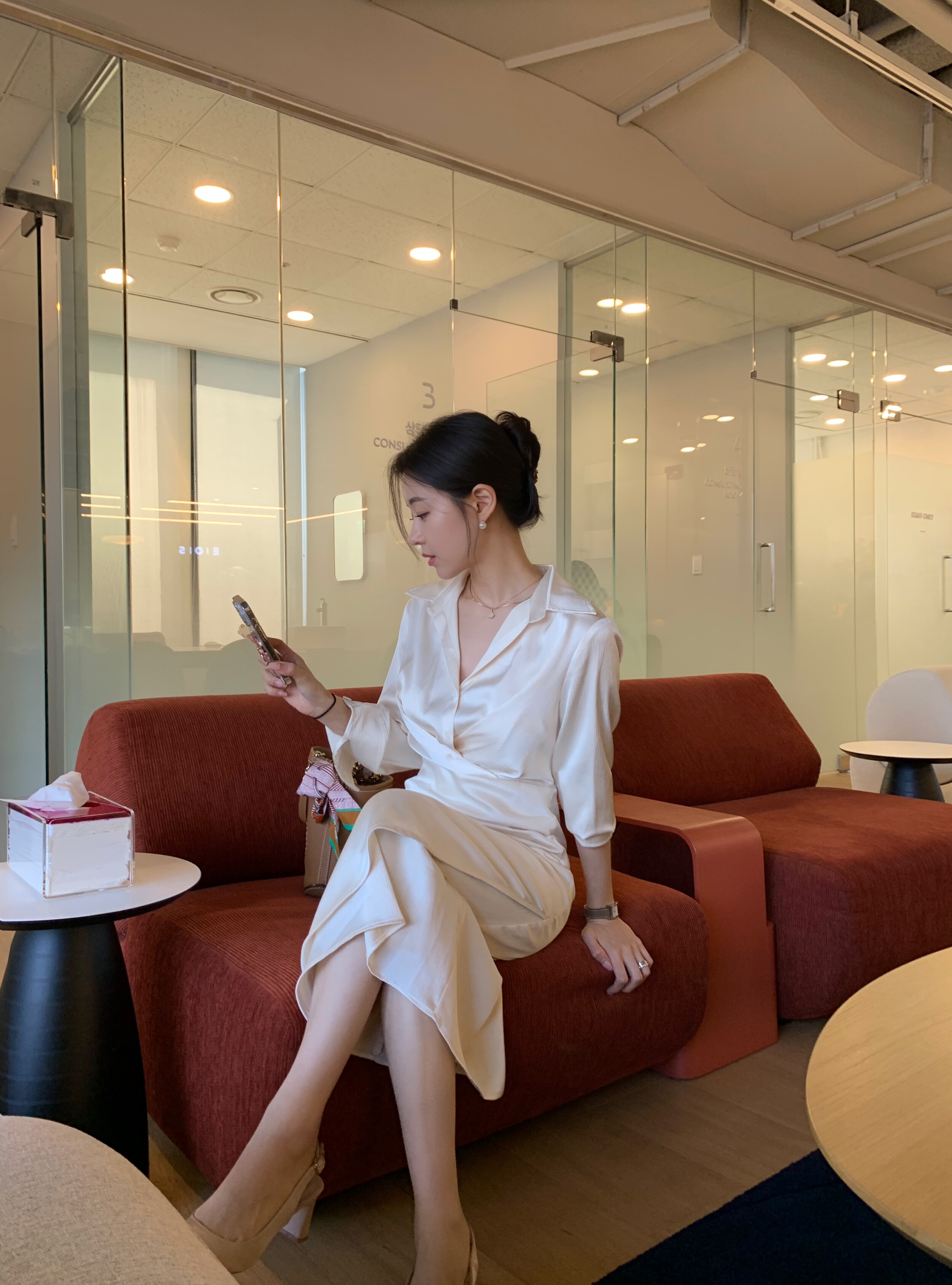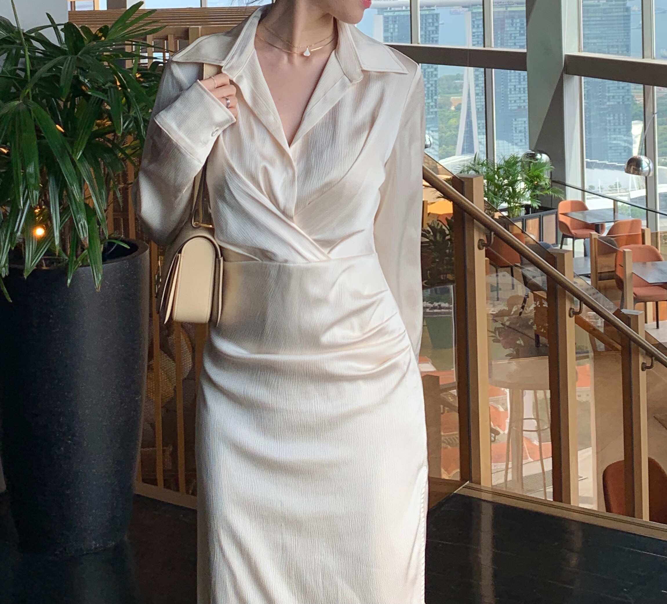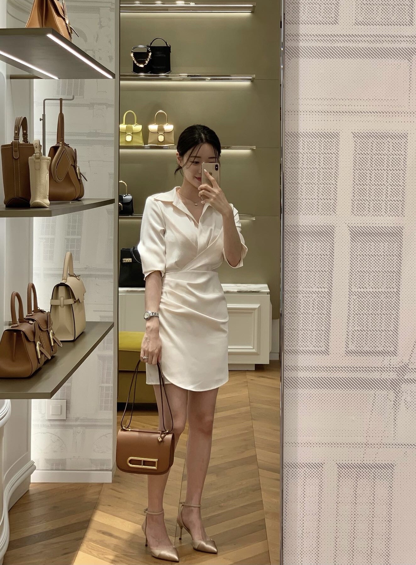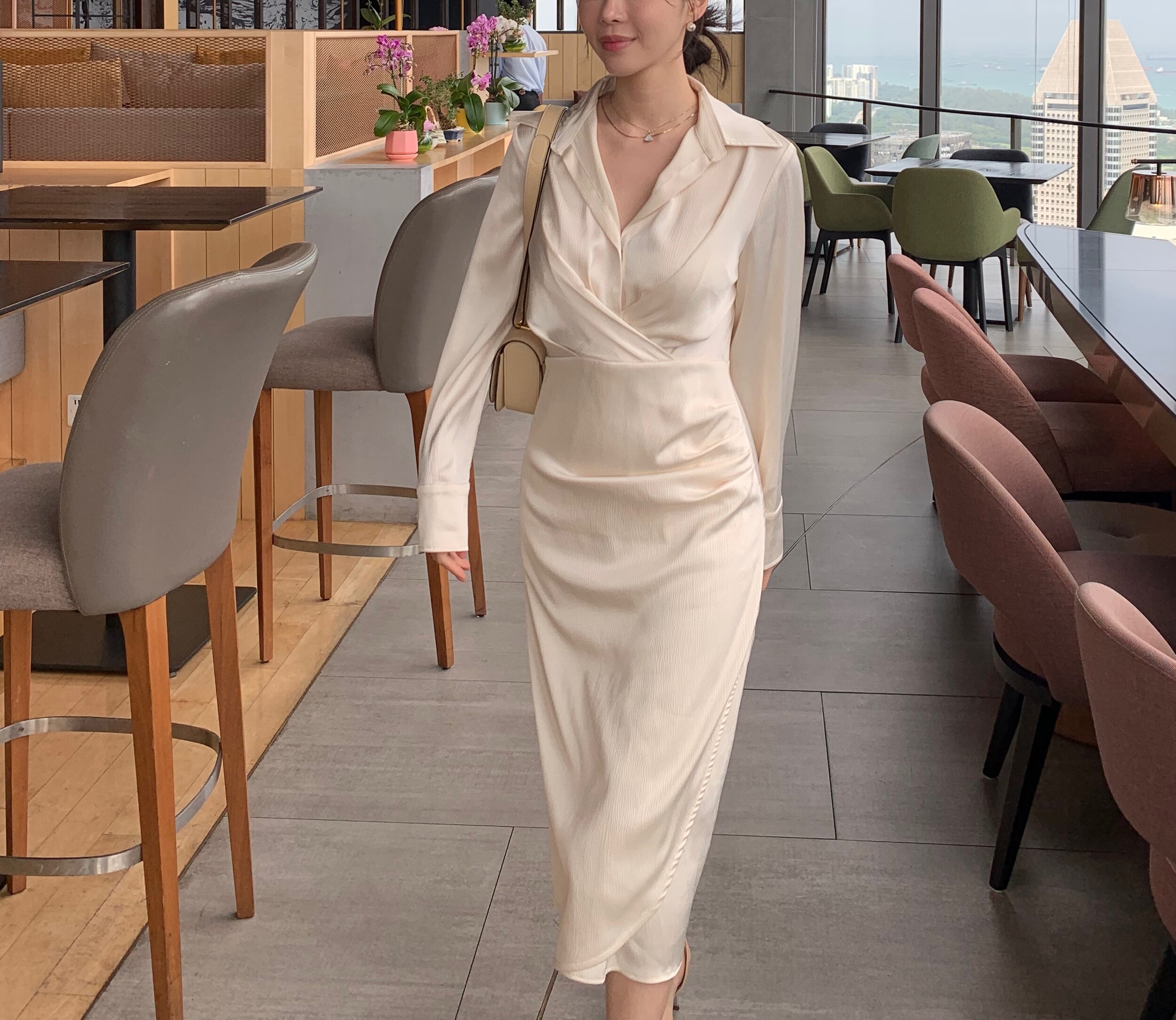 이 원피스는 은은한 광택감과 셔링 디테일이 더해져 고급스럽고 우아한 무드를 선사합니다.