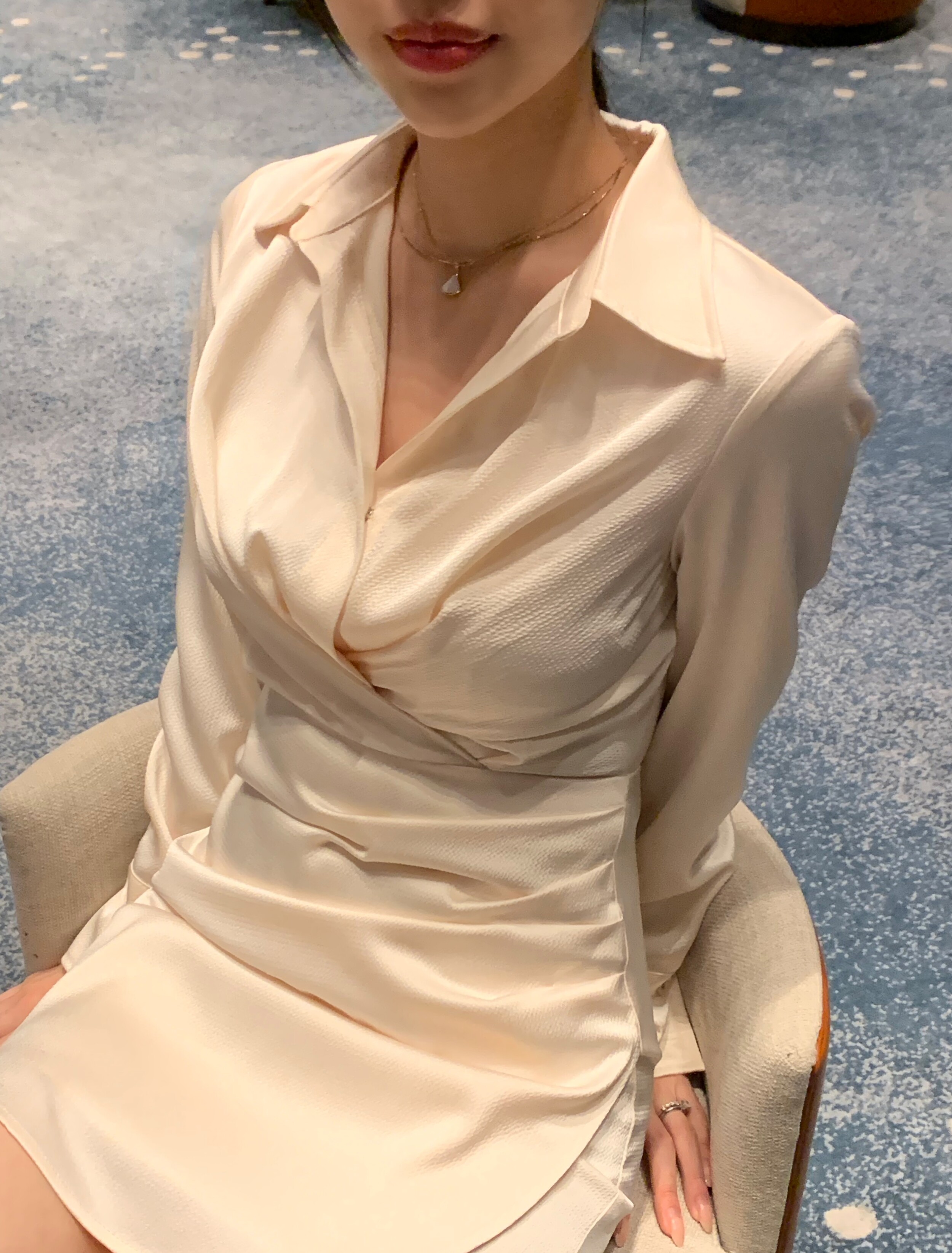 셔츠 셔링 원피스 HEART-NECK VELVET DRESS