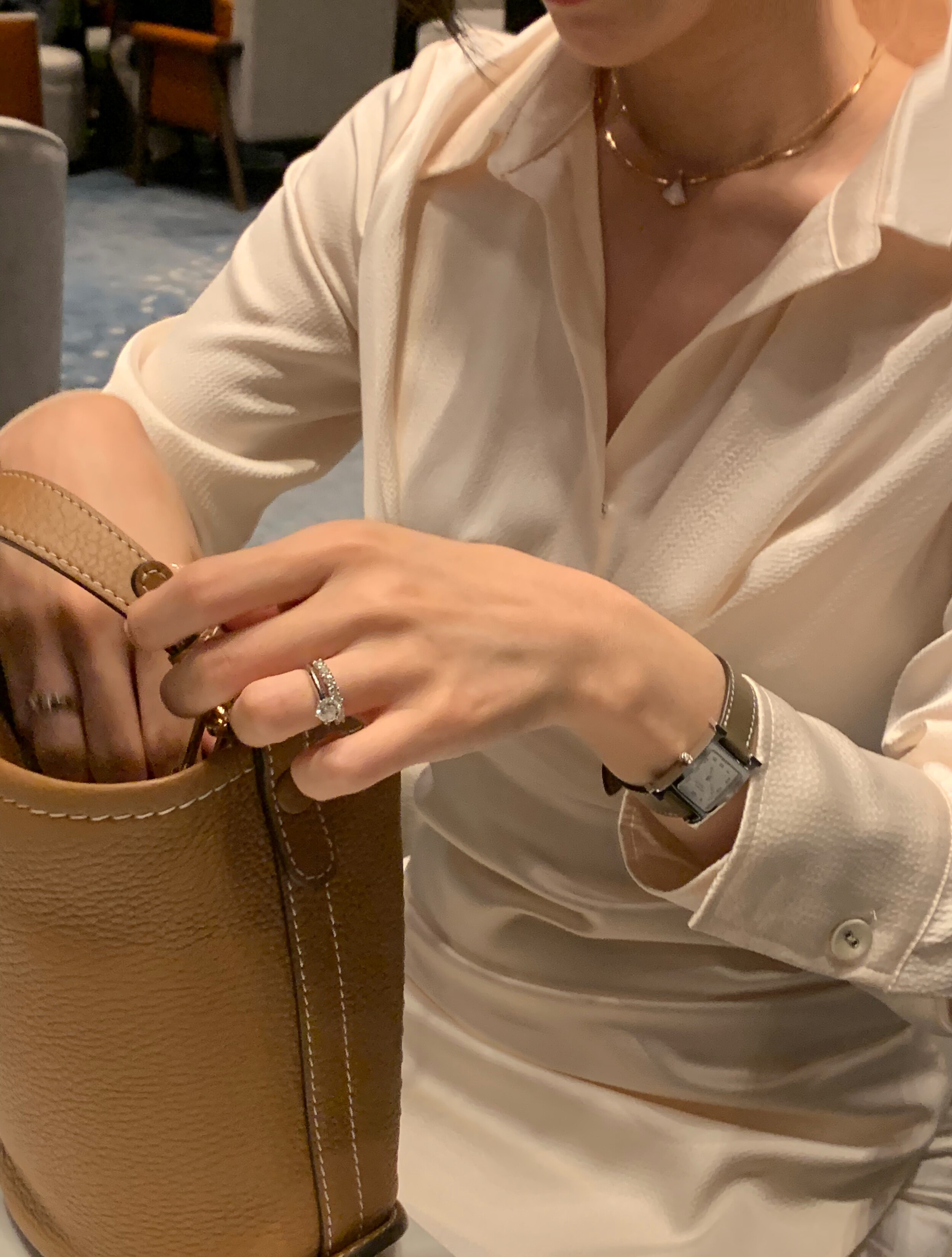 밝은 컬러 특성상, 어두운 색 이너는 비침이 살짝 있으니 올 화이트 또는 스킨톤으로 착용하시는것을 추천드립니다.