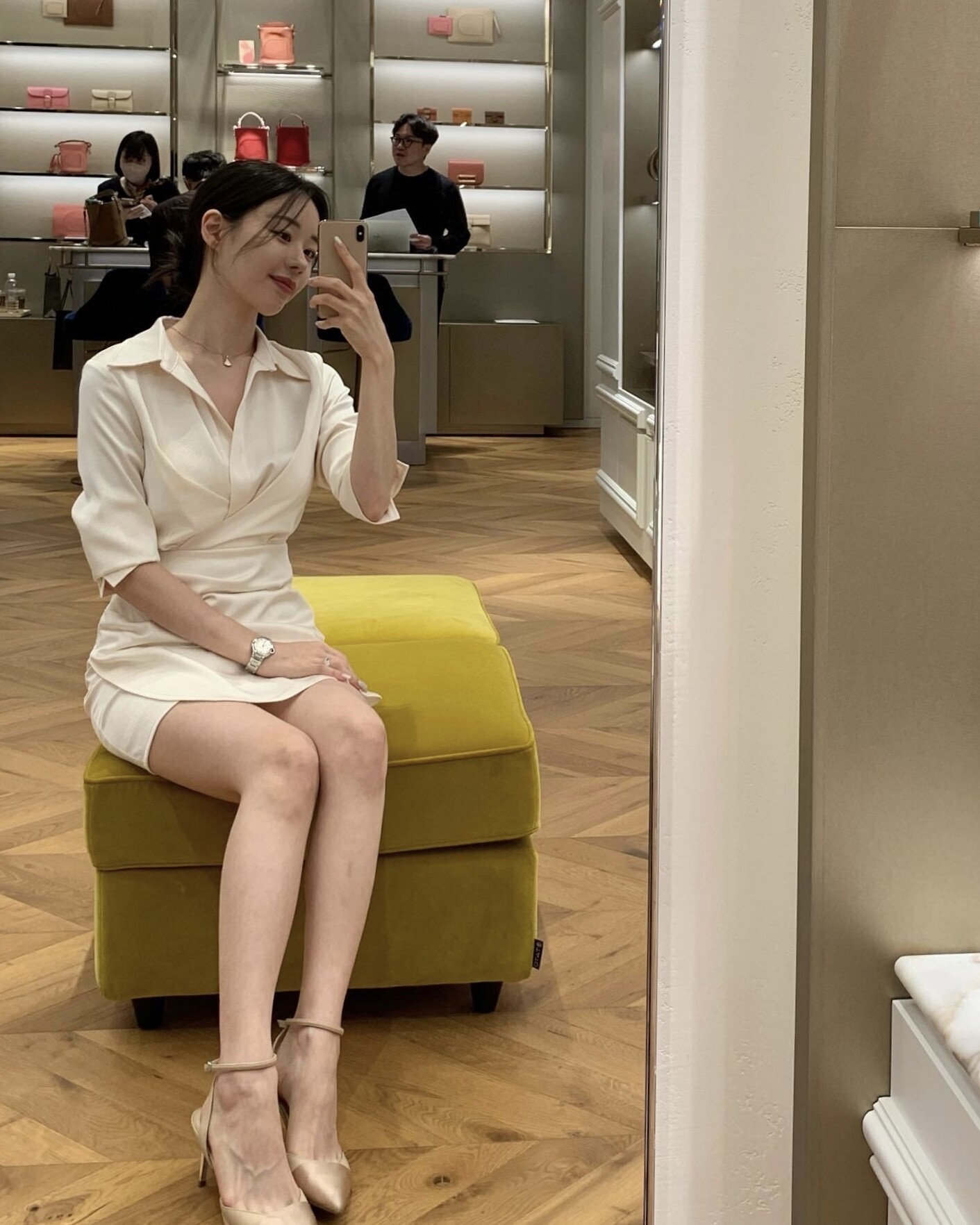 전체적으로 셔링이 잡혀 있어 착용했을 때 오히려 바디라인이 부담스럽게 부각되지 않아 편안하게 느껴지는 것이 장점입니다.