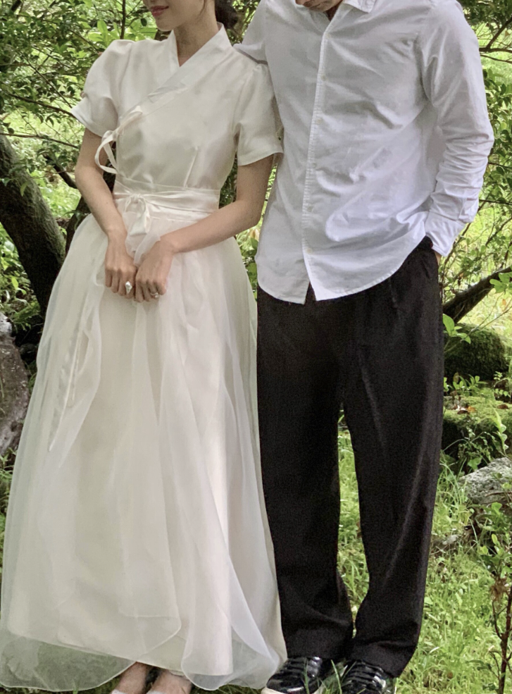 This overskirt is designed to layer beautifully over the K-dress, enhancing the traditional hanbok-inspired silhouette. Made from a lightweight, sheer fabric, it adds a romantic elegance and brings depth and dimension to the overall look.